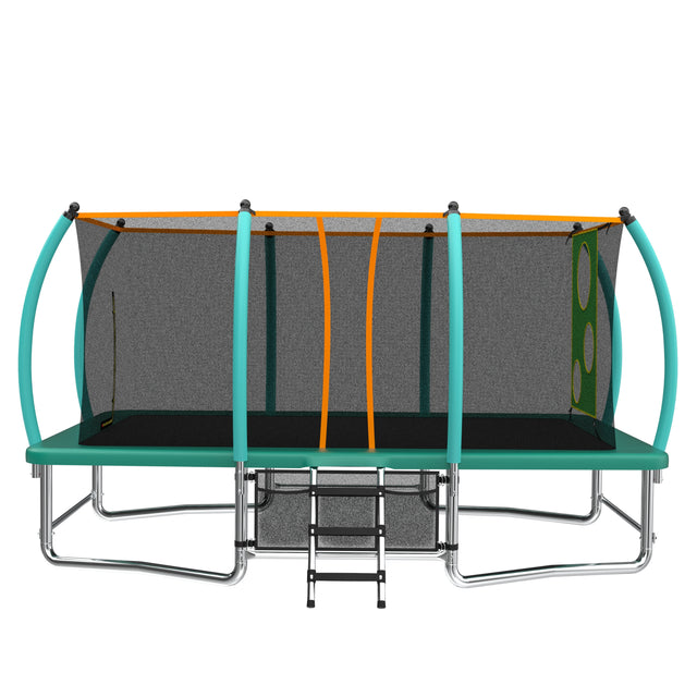 Designed for both kids and adults, this 10x16-foot outdoor trampoline delivers endless fun and fitness in your backyard. Constructed with heavy-gauge galvanized steel, it ensures durable, rust-resistant performance for years of bouncing joy. The spacious rectangular design (192 inches long by 120 inches wide) provides ample jumping space for tumbling and play. Eight foam-padded safety enclosure poles keep the UV-proof net secure, while four W-shaped legs deliver exceptional stability. Equipped with a 3-step galvanized steel ladder, entry and exit are effortless for all ages. Compliant with rigorous ASTM safety standards, this trampoline prioritizes your family’s well-being while offering dynamic recreation. Elevate your outdoor activities and create lasting memories today.