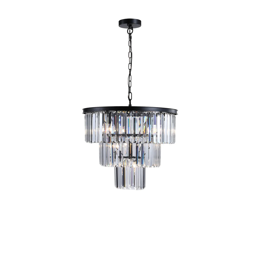 Luxury 3-Tier Crystal Chandelier Black Iron Pendant Light