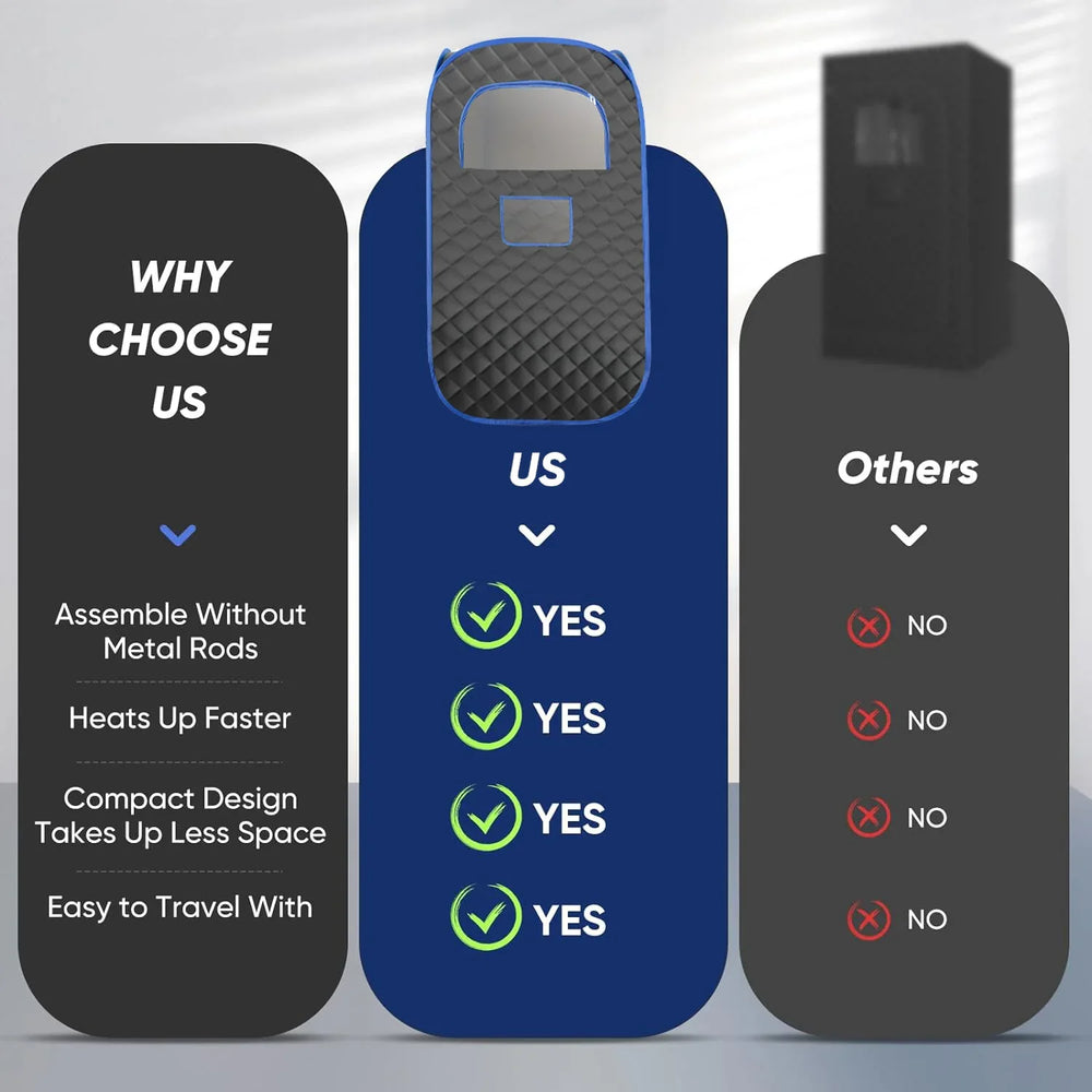 - Comfortable Folding Chair Included: Sit back and relax during your sauna session.