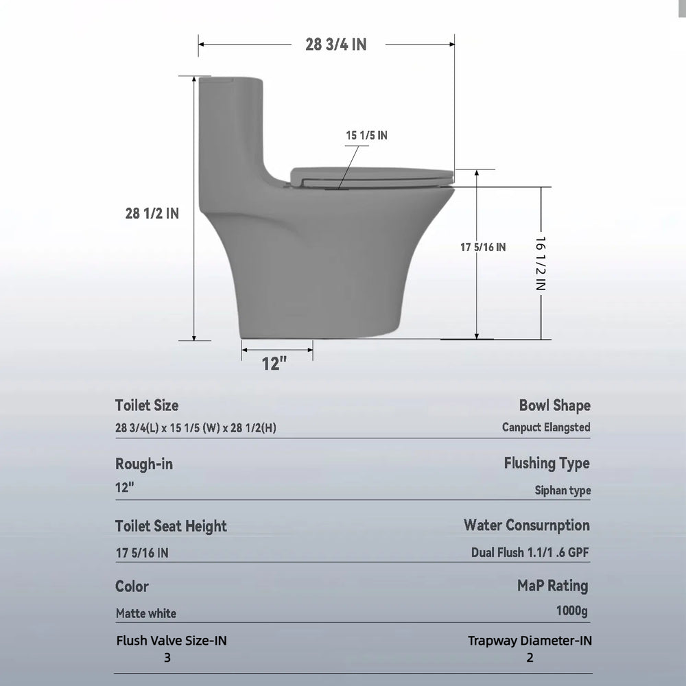 Upgrade your bathroom with this sleek and efficient one-piece toilet featuring a stunning light gray ceramic finish. Designed with elegant lines and a streamlined elongated bowl, it blends contemporary style with high functionality. The Tornado dual-flush system offers flexible flushing options, delivering powerful performance while conserving water to meet EPA WaterSense® High Efficiency Toilet (HET) standards. At a comfortable ADA height of 17 inches, it's perfect for accessibility, providing ease of use for individuals with limited mobility. The quick-release, soft-closing seat adds convenience and quiet operation, enhancing hygiene and user comfort. Built with durable ceramic, this toilet promises lasting durability and easy maintenance. Thoughtfully engineered to balance style, efficiency, and comfort, it’s the ideal choice for any modern bathroom. Elevate your bathroom experience today.