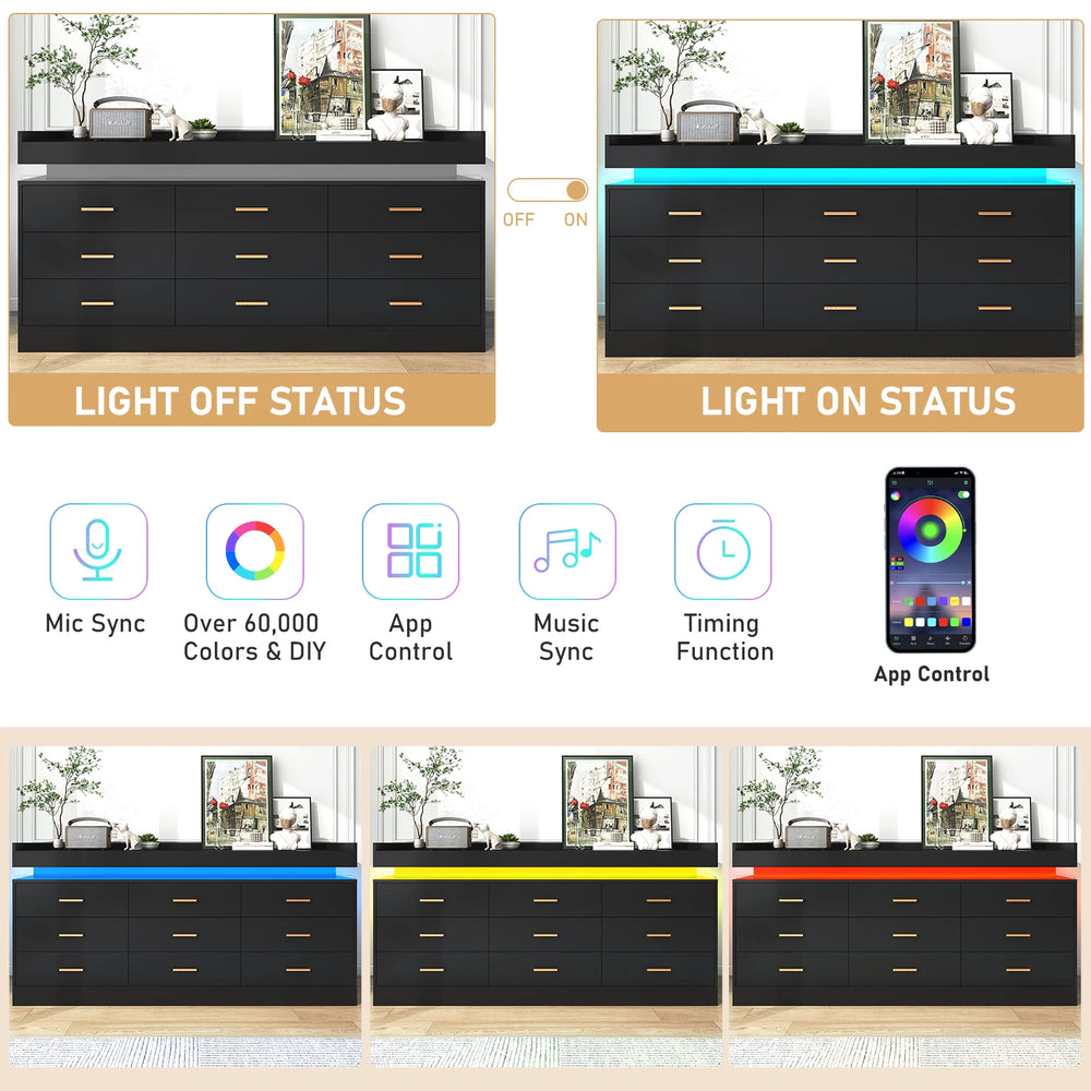Enhance Your Home with a Modern 9-Drawer Dresser Featuring LED Lighting