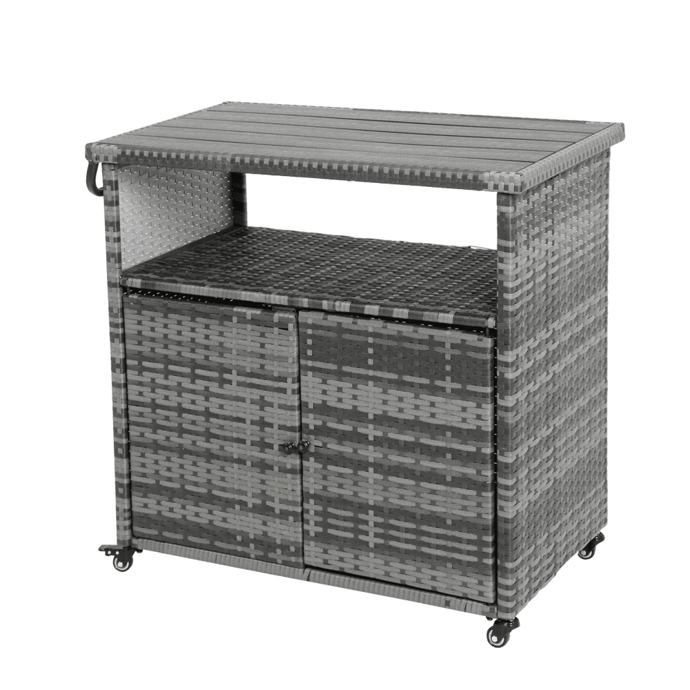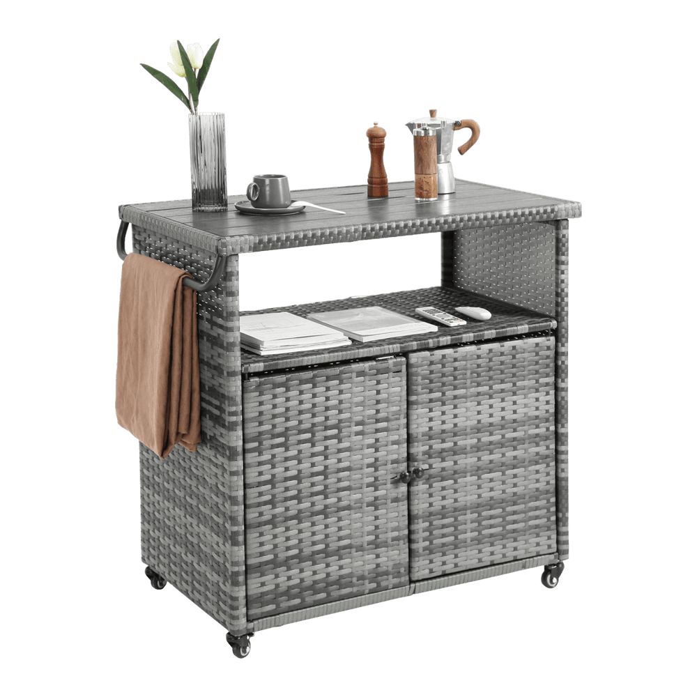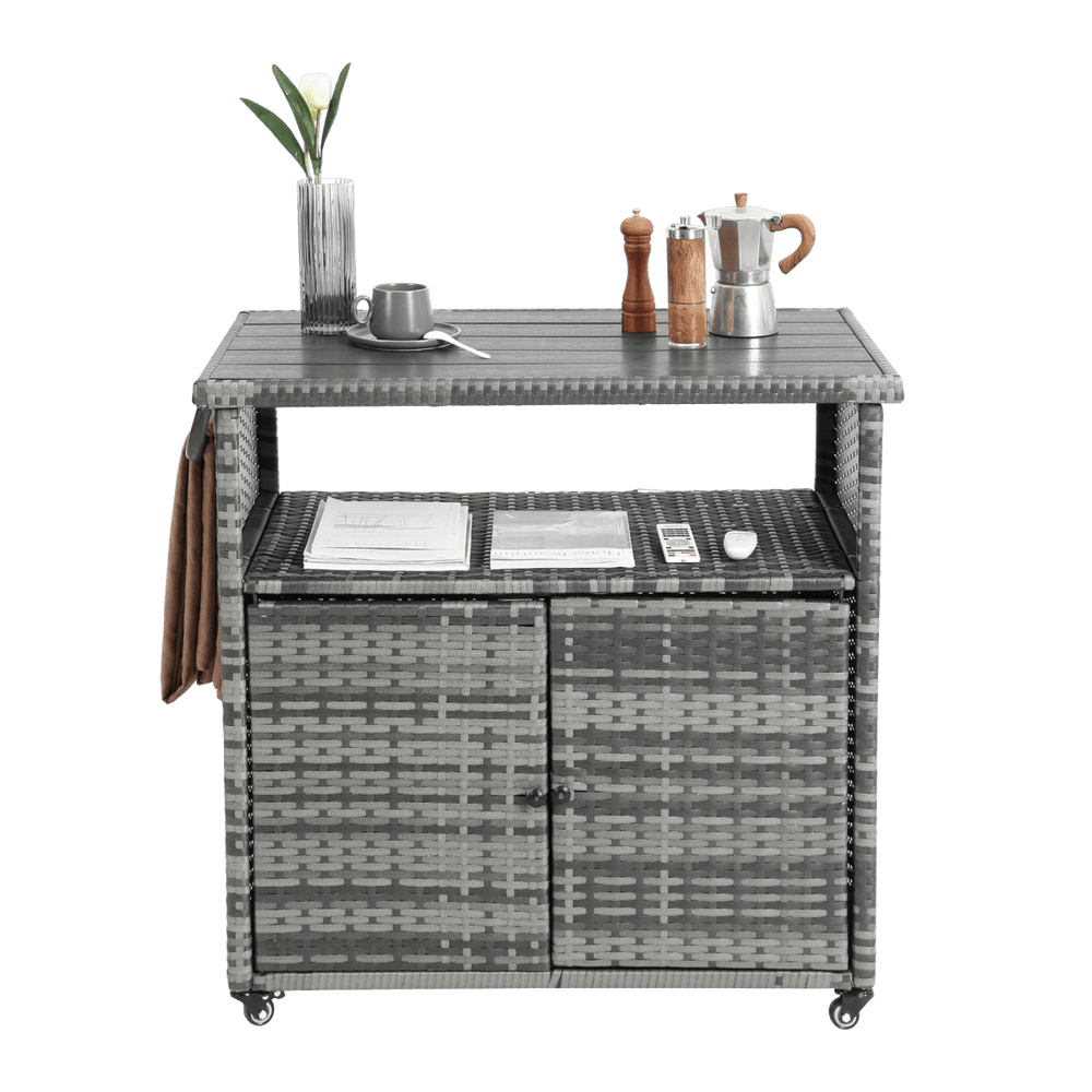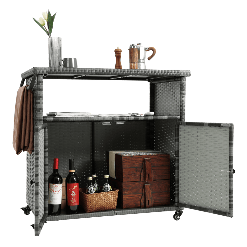 Outdoor Wicker Patio Bar Serving Cart With Wheels