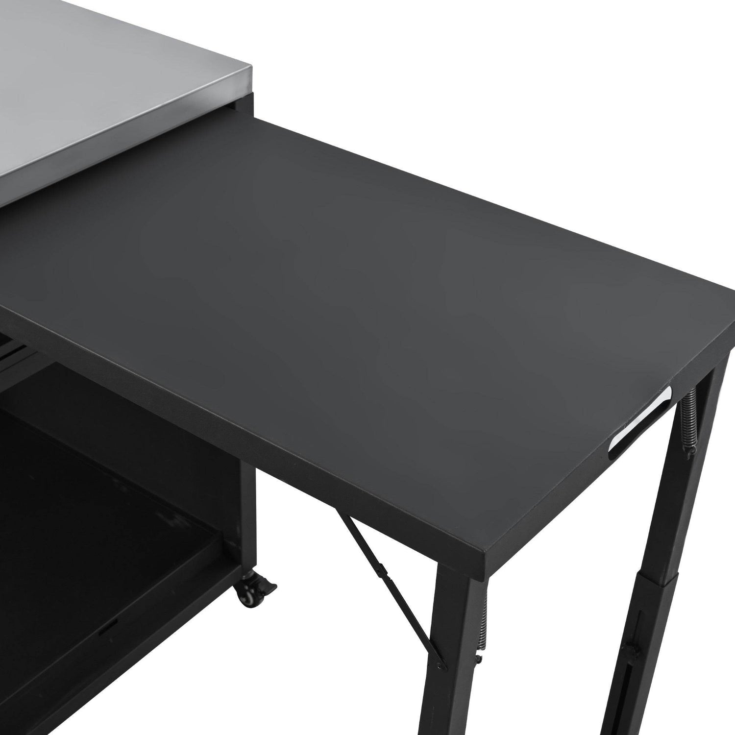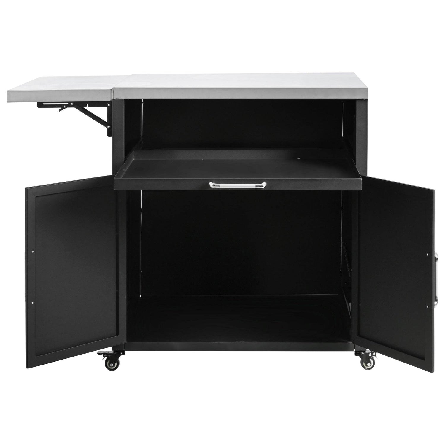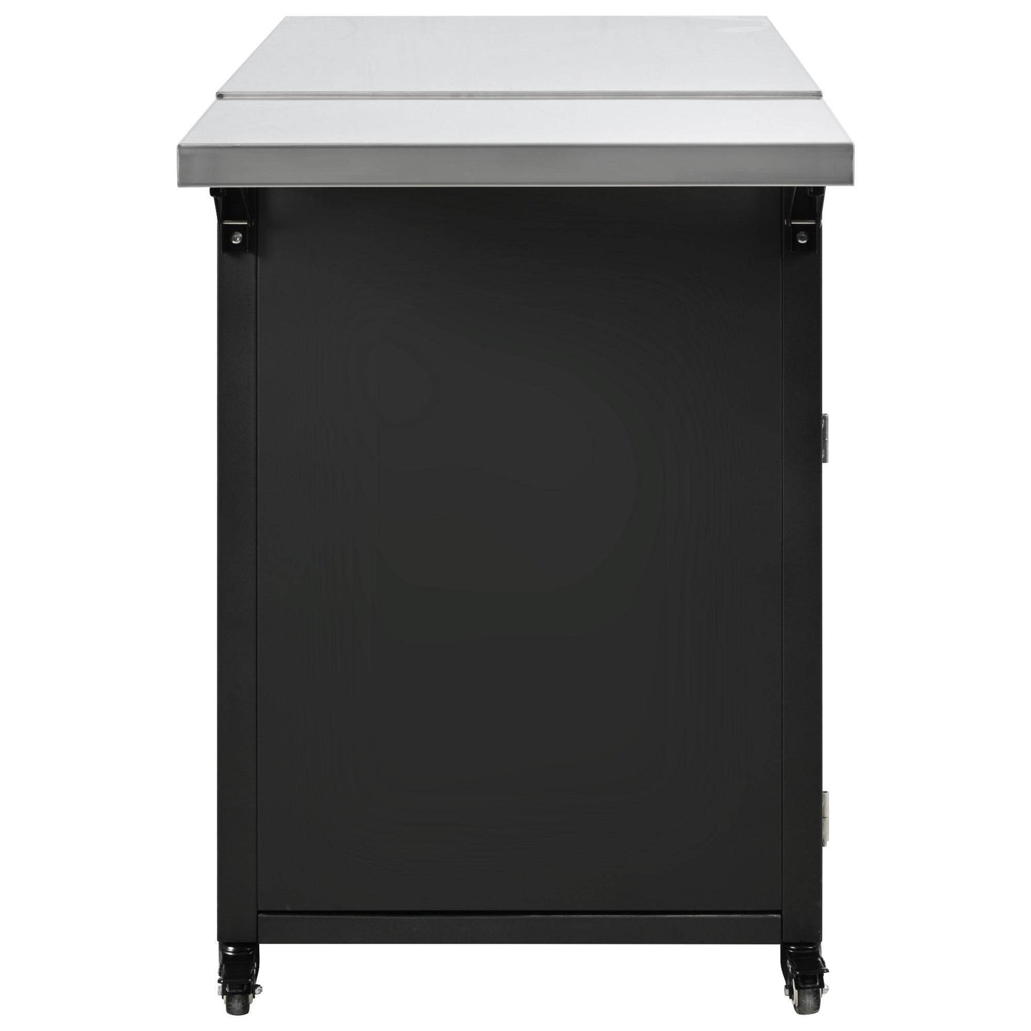 Upgrade your garden or patio with this multifunctional outdoor cabinet designed for durability and flexibility. Featuring a roomy stainless steel tabletop that resists rust and stains, it offers an ideal surface for food prep, grilling, or gardening tasks. The left side includes a foldable table to easily expand your workspace, while the right side features an extendable iron panel for added surface area whenever you need it. Beneath the top, a spacious drawer and a two-door storage cabinet provide ample room to organize utensils, tools, and outdoor essentials, keeping everything within reach. Crafted with a sturdy iron frame and equipped with lockable wheels, this cabinet ensures lasting strength, mobility, and stability in any outdoor setting. Measuring 47.2 inches long, 23.7 inches wide, and 37.4 inches high, it’s the smart, stylish solution to optimize your outdoor activities. Elevate your outdoor living space today.