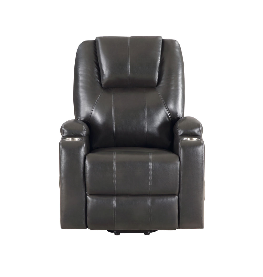 Gunmetal Power Lift Faux Leather Recliner With Cup Holders
