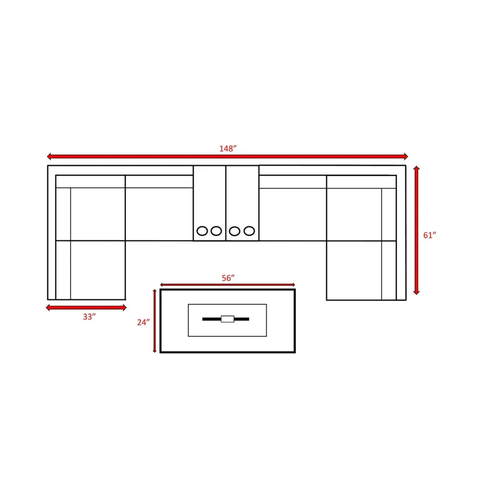 - Overall Dimensions: 26” H x 148” W x 61” D sofa size, corner chair 33” L x 33” W.