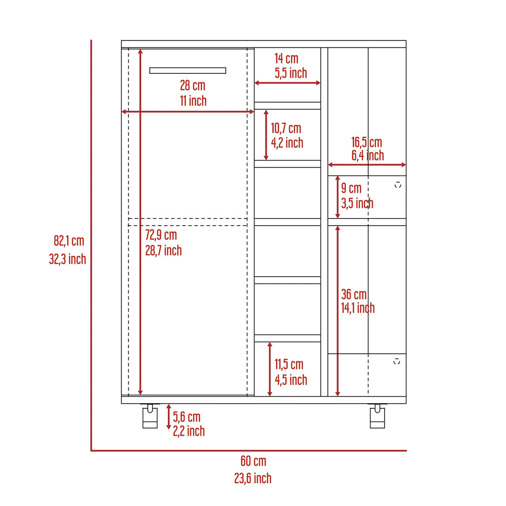 - One-Door Cabinet: Additional enclosed storage for miscellaneous items.