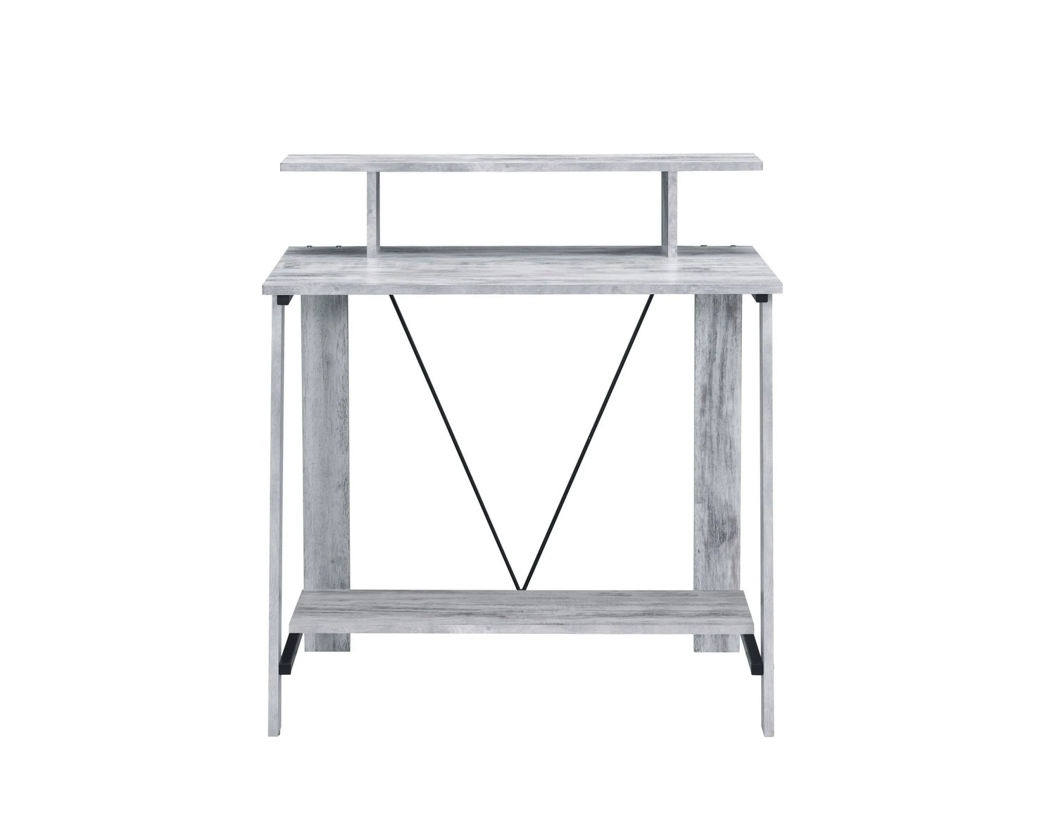 Create a stylish and functional home office or study area with the Nypho Antique White & Black Finish Writing Desk. Crafted from durable synthetic wood, this desk features a clean rectangular design that fits seamlessly into any decor. Its spacious surface and two open compartments provide ample room to organize your essentials, keeping your workspace clutter-free. The sturdy ladder-style metal base with a crossbar offers exceptional stability, while the built-in 2 USB ports and 1 plug port make charging devices effortless. Compact yet comfortable, the desk measures 32 inches wide by 18 inches deep and stands 35 inches tall, making it perfect for small spaces without compromising legroom or storage. Upgrade your productivity and style—bring home this versatile writing desk today.