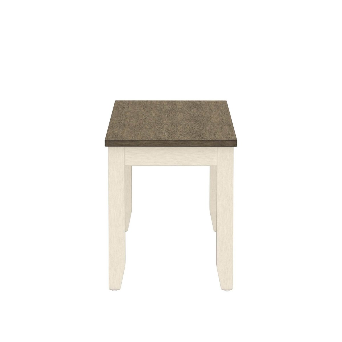 Brown and white solid wood dining table set assembles quickly with included tools, showcasing farmhouse style in a dogwood bark and blossom palette. Easy to care for and durable, it fits well in classic or rustic dining spaces measuring 60 by 36 by 30 inches.