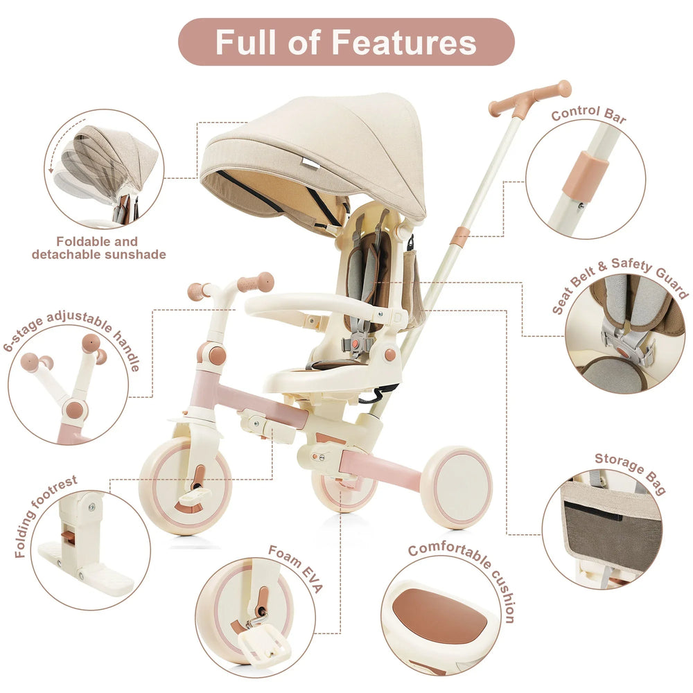 7-In-1 Foldable Aluminum Alloy Baby Tricycle With Canopy