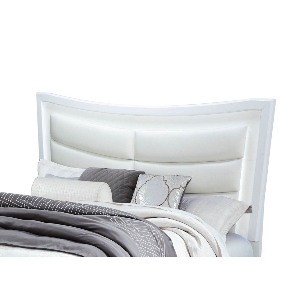 King Contemporary White Panel Bed Frame With Padded Headboard