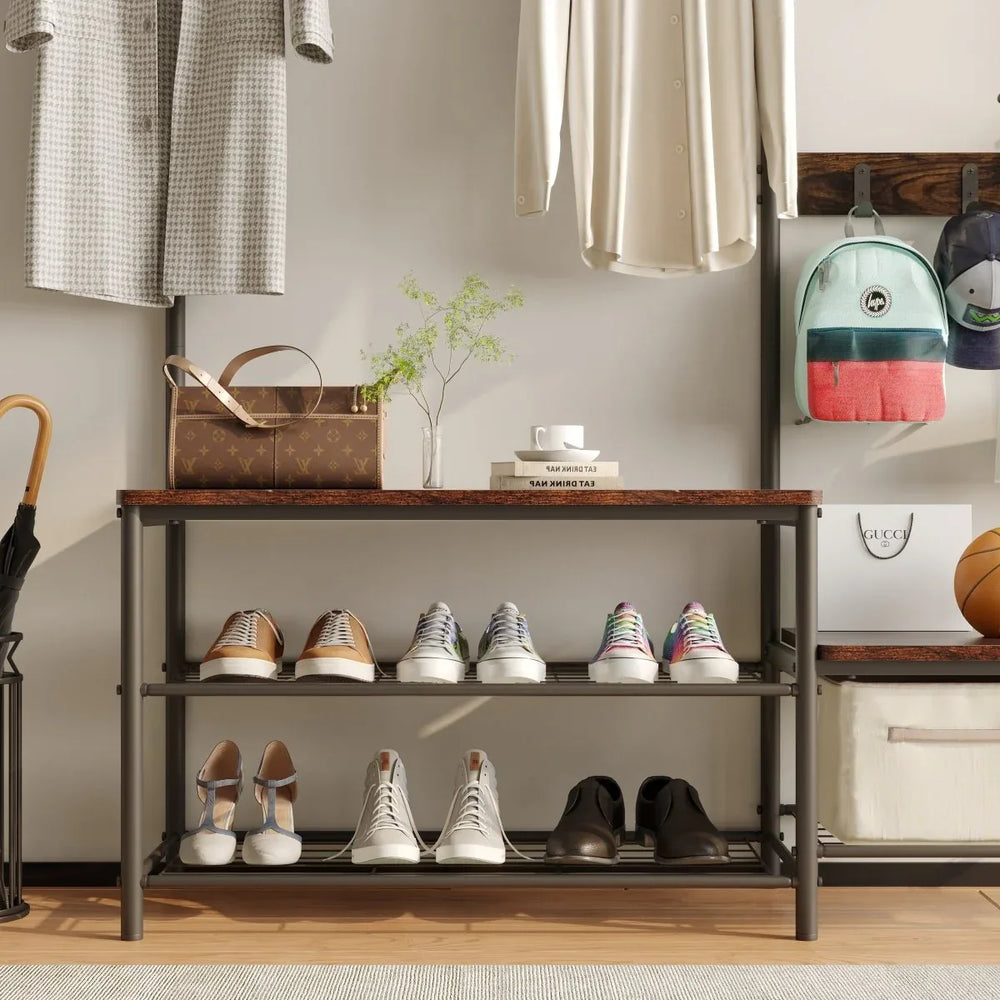 - 3-in-1 Functionality: Includes storage bench, coat rack with 6 hooks, and shoe racks.
