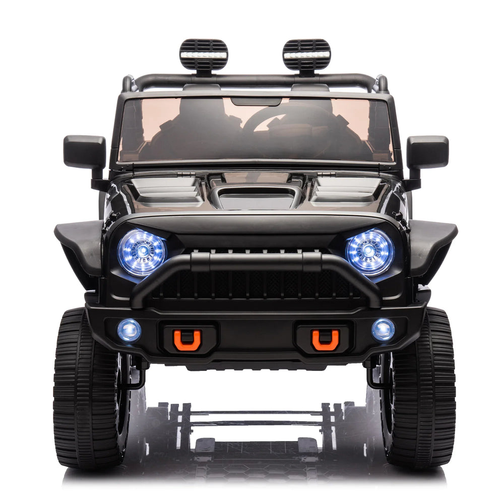 Let your children embark on thrilling off-road journeys with this dynamic two-seater ride-on truck designed for kids aged 3 and up. Featuring a spacious 20.28-inch wide double seat, it offers room for friends or siblings to share the fun. The powerful dual 200W motors and 24V battery deliver smooth rides at speeds between 2.17 to 3.42 MPH. Equipped with a robust four-wheel suspension system, it ensures comfortable driving over bumps and uneven terrain. Safety is paramount with two independent seat belts and a slow start function to protect little riders. Bright LED lights and an integrated MP3 player with Bluetooth connectivity provide an engaging audio-visual experience. Parents stay in full control with a 2.4G one-to-one Bluetooth remote, allowing them to manage speed and direction for added peace of mind. Crafted from durable polypropylene, this black ride-on truck combines fun and security for endless outdoor enjoyment. Elevate your child’s playtime today!