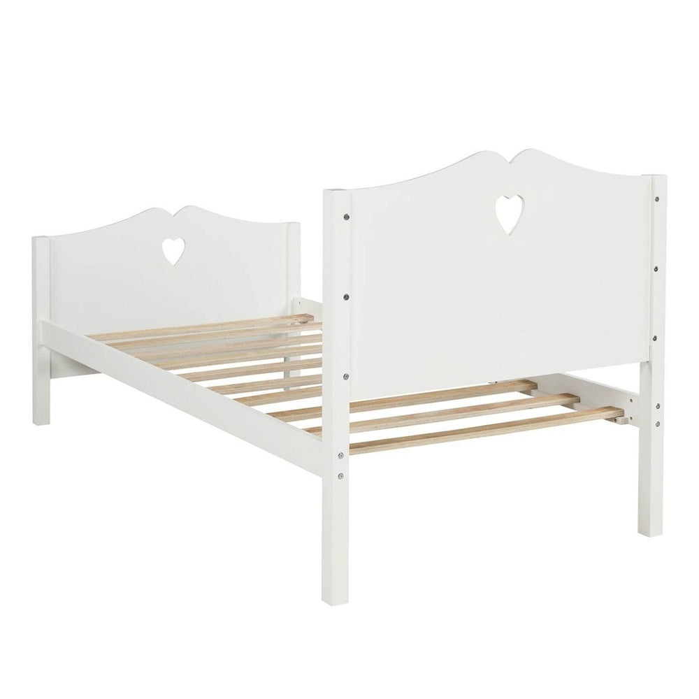 Enhance your bedroom with this clean and stylish twin platform bed frame, crafted from solid pine wood for exceptional durability and lasting support. Its white finish and classic design blend effortlessly with any décor, creating a serene and modern sleeping space. Featuring ten sturdy wood slats, it provides reliable foundation without the need for a box spring, ensuring your mattress stays well-supported while improving airflow for a cooler night’s rest. The included headboard and footboard add a touch of elegance while maintaining a minimalistic silhouette that maximizes room space. Lightweight yet solid, this platform bed is easy to move and assemble with clear instructions and included tools. Perfect for small bedrooms, guest rooms, or anyone seeking a combination of strength, style, and simplicity. Elevate your sleep environment today with this versatile and practical twin bed frame.