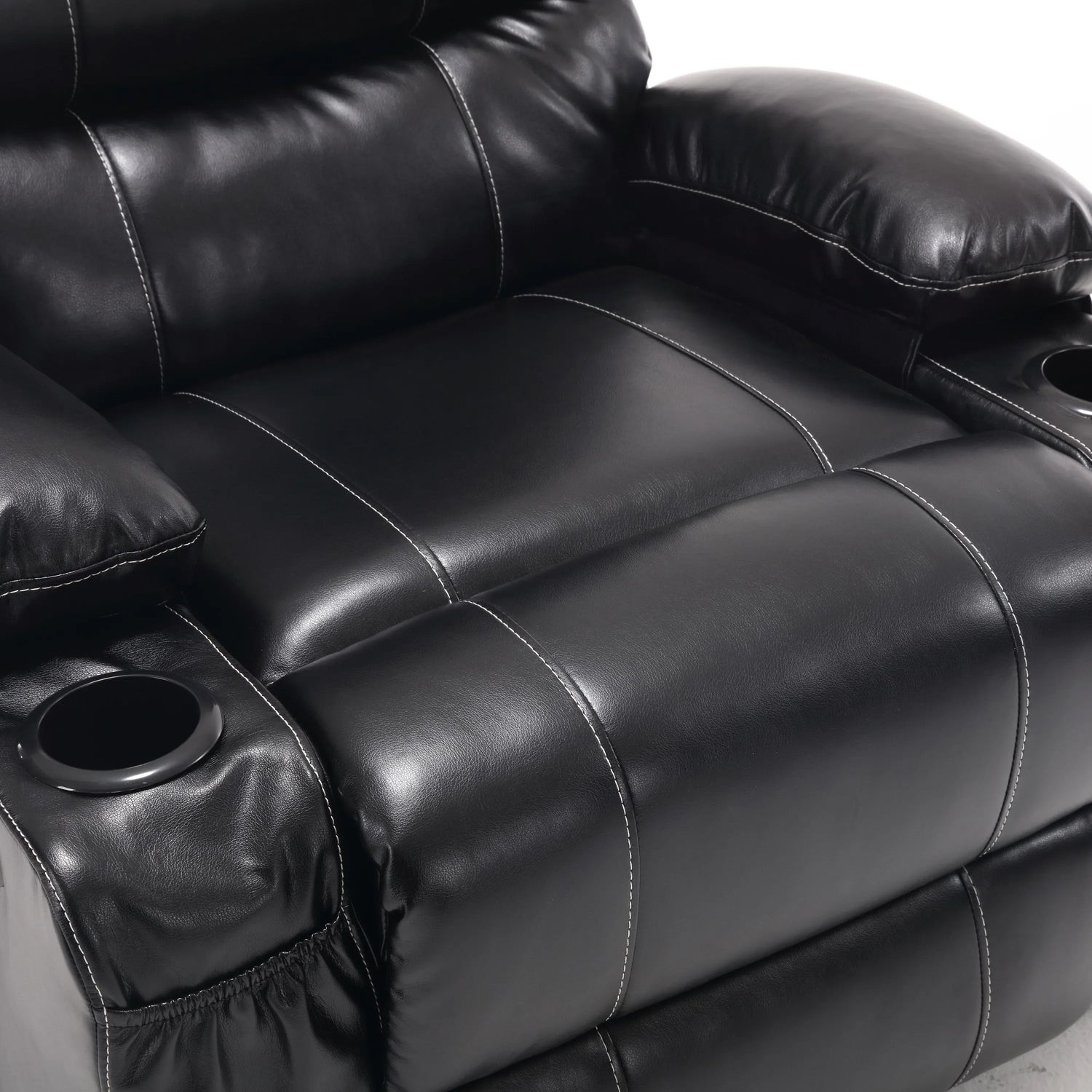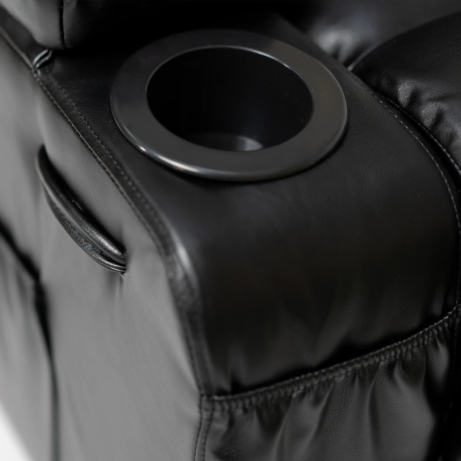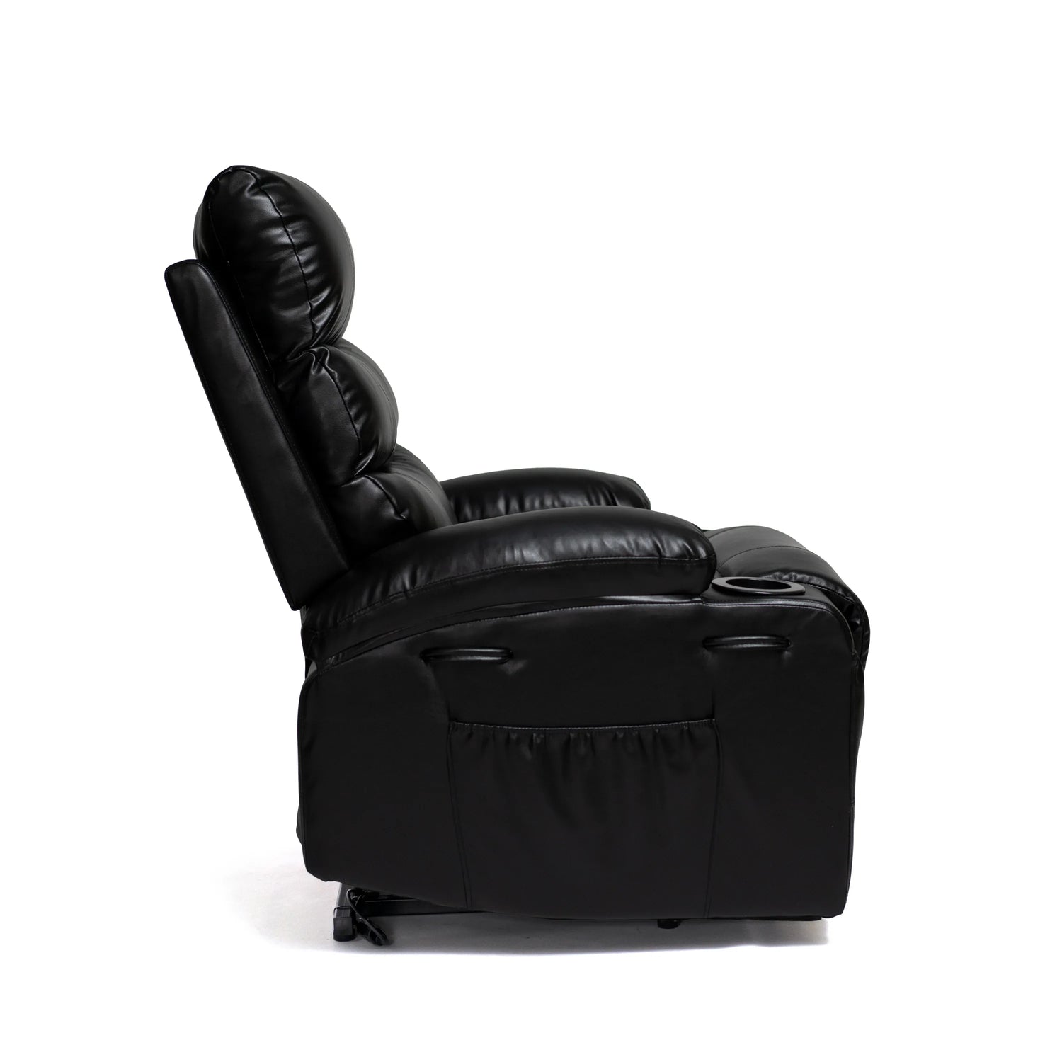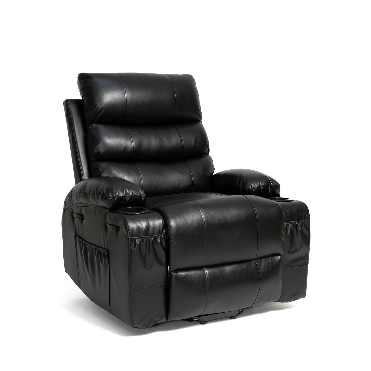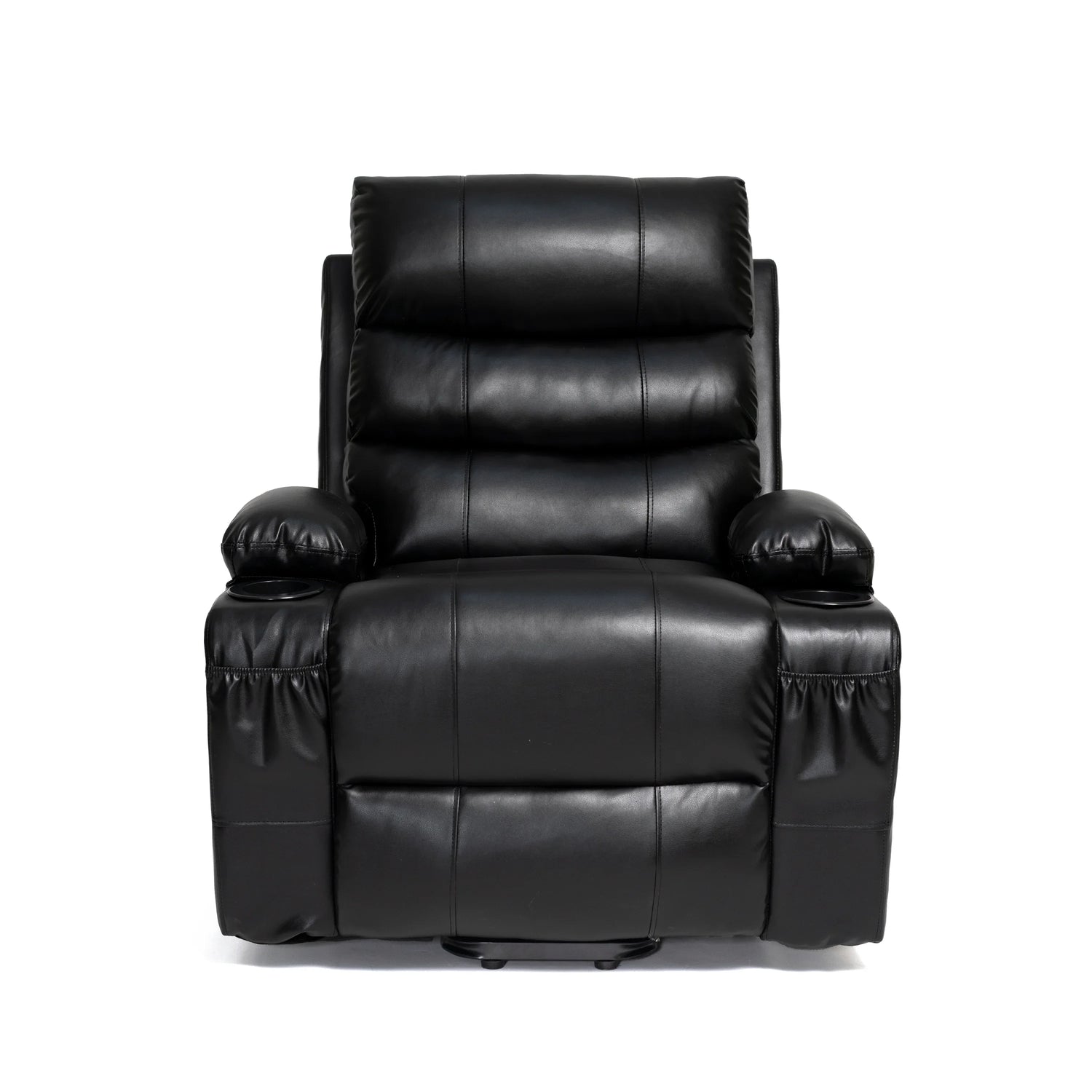 This large-size electric power lift recliner chair is expertly designed to provide maximum comfort and ease of use, especially for the elderly or those with mobility challenges. Crafted with durable black PU upholstery, it offers a smooth, easy-to-clean surface that resists wear. The generous 21-inch seat width supports hips and legs comfortably, making long sitting sessions enjoyable. Integrated 8-point vibration massage and soothing lumbar heat combine to relieve muscle tension and improve circulation, enhancing your relaxation. The powerful motorized lift mechanism assists you safely from sitting to standing positions, reducing strain and increasing independence. Complete with a convenient side pocket for essentials and easy assembly with minimal tools, this recliner blends functionality and comfort seamlessly. Elevate your home relaxation and wellness experience today.