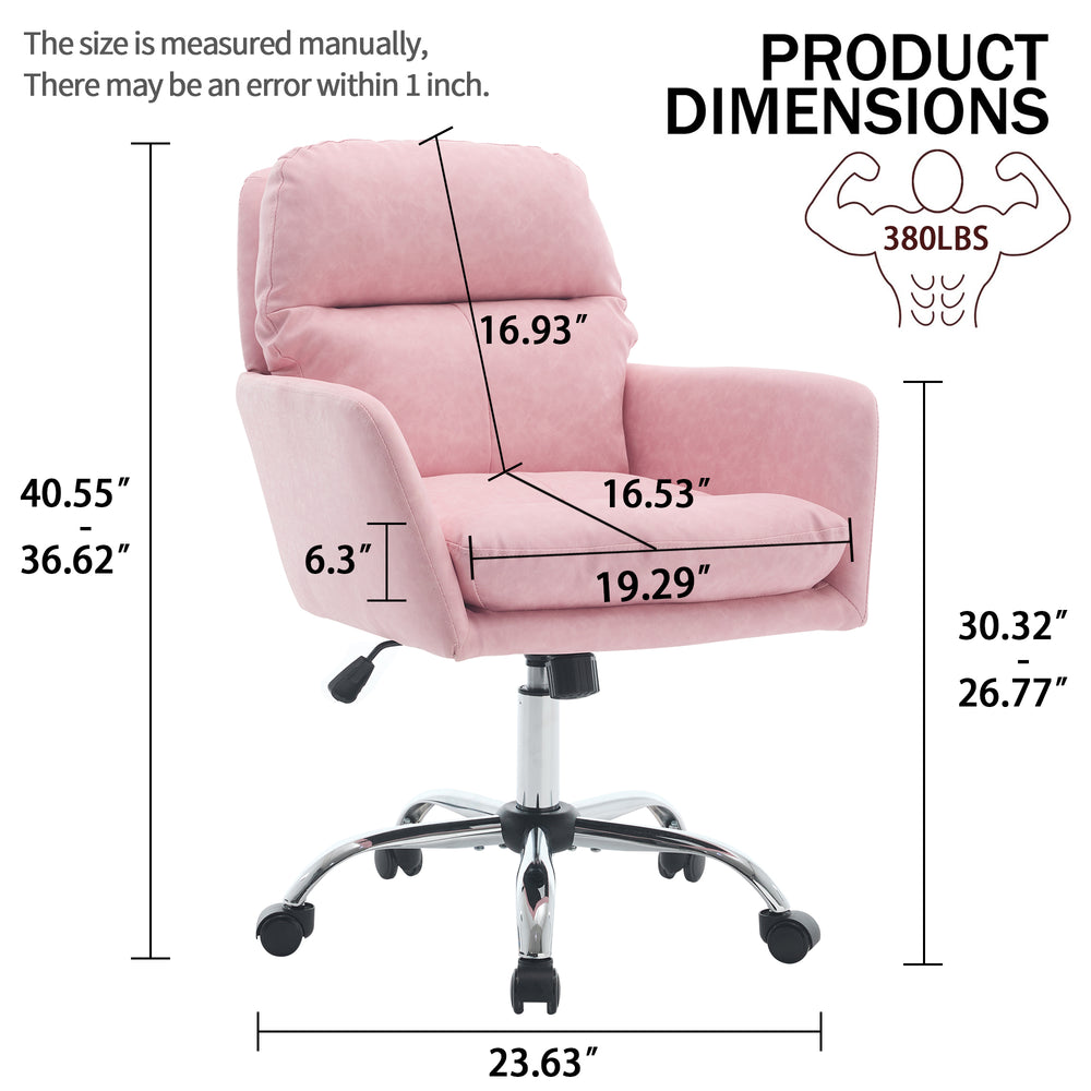 Upgrade your workspace or dressing area with this stylish pink office chair crafted from smooth, durable PU artificial leather. Its high-density foam cushioning and plush cotton fill contour perfectly to your body, providing plush comfort and dependable support throughout long working hours. The robust metal framework ensures stability and longevity, while the adjustable height feature allows you to customize your seating position for optimal ergonomics. Easy to clean and resistant to stains, this chair blends modern design with practical functionality, making it ideal for office, bedroom, or vanity setups. Enhance your productivity and relaxation with a chair that works as hard as you do. Elevate your seating experience today.