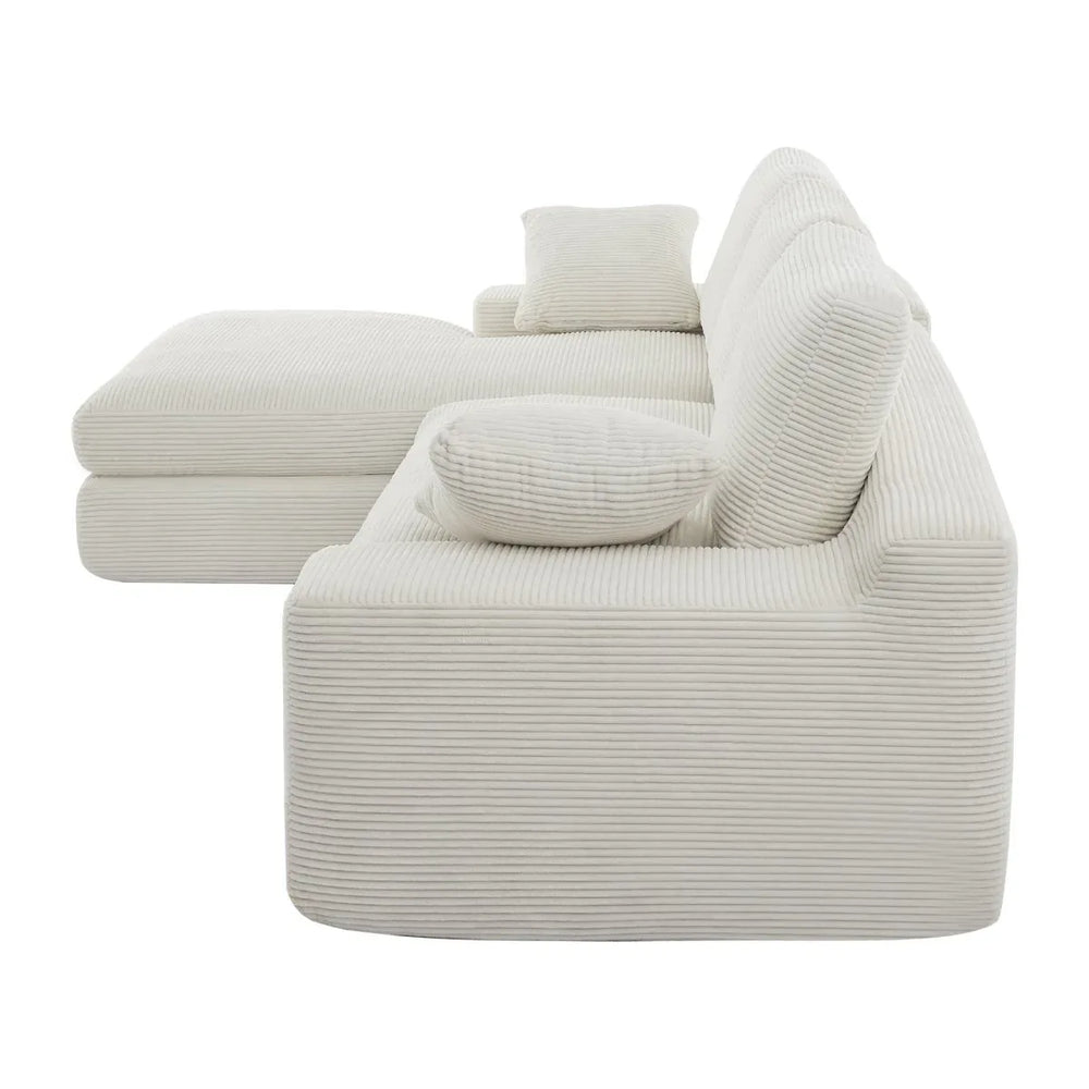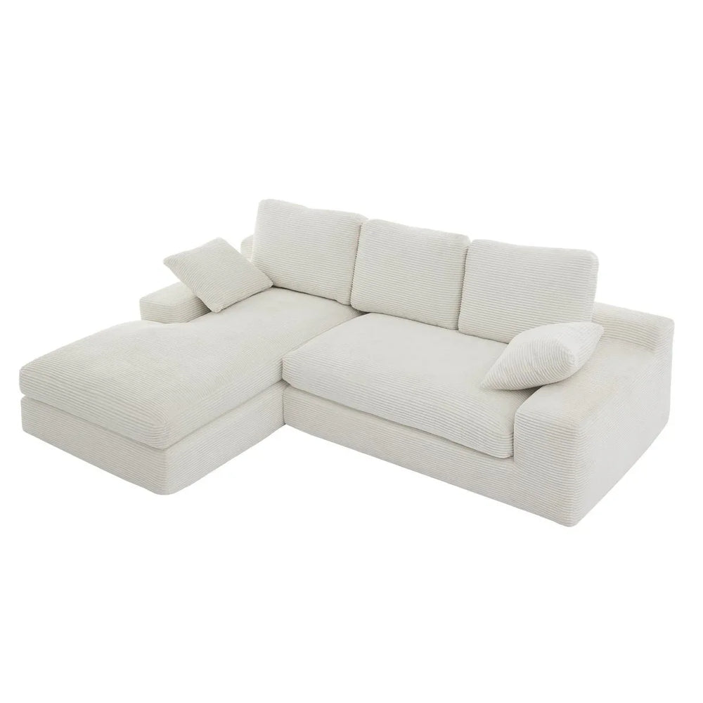 White Corduroy Compressed 4-Seat Medium-Soft Sofa With Pillows