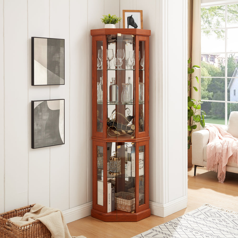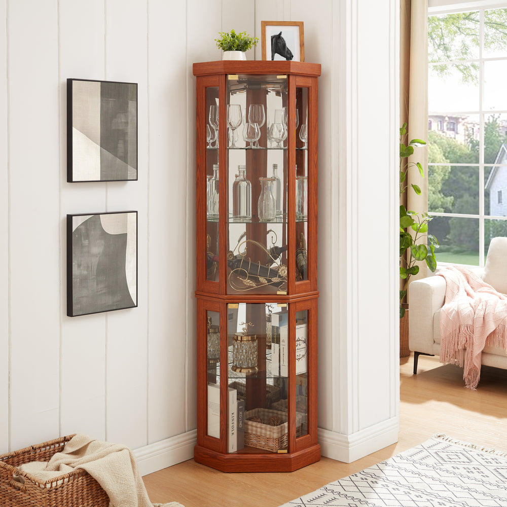Lighted Corner Curio Cabinet With Adjustable Glass Shelves