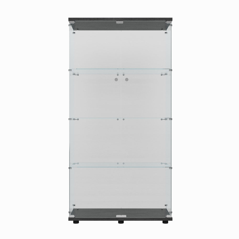 Showcase your prized collections or organize your essentials with this elegant tempered glass display cabinet. Crafted from durable particle board and engineered hardwood, the cabinet features 3-4 spacious tempered glass shelves that safely hold up to 11 lbs each. Its classic black finish and sleek design complement any room décor, making it perfect for your living room, office, or wine display. The built-in, battery-powered PAIPAI light with remote control lets you customize a variety of colors, adding a captivating ambiance to your space. Adjustable floor feet ensure stability on uneven surfaces, while the included casters with locking mechanisms offer flexible placement and secure positioning. Safety is prioritized with tempered glass panels designed to minimize injury risk. Easy to assemble with numbered parts and detailed instructions, this cabinet provides functional storage with style.
