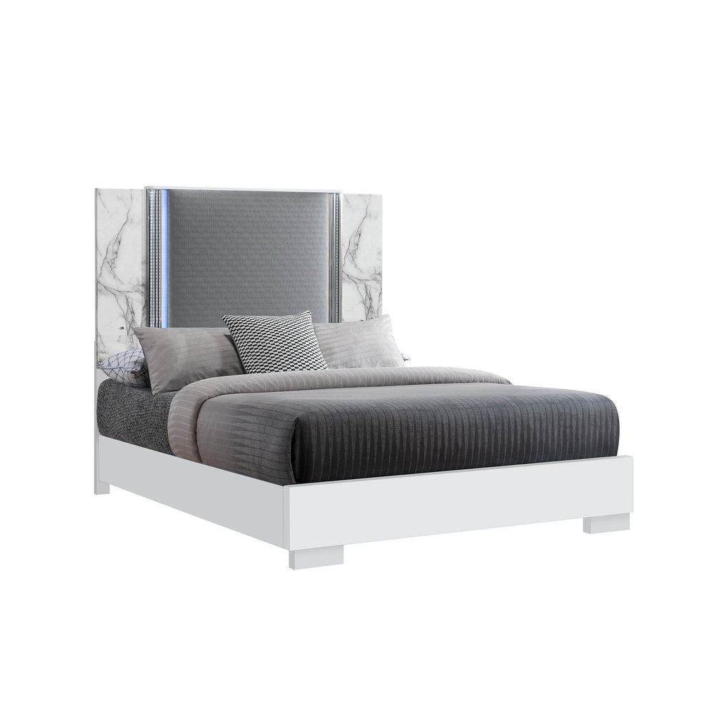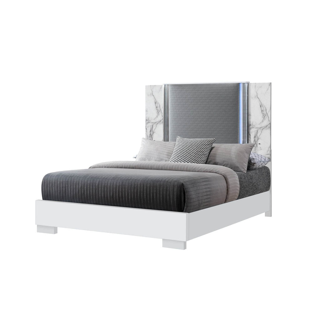White Marble LED Accent Lighting Queen Bed Frame