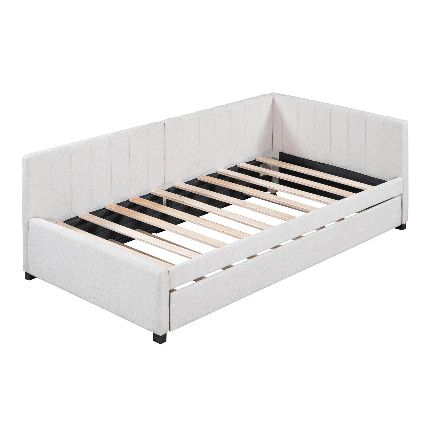 Upholstered Twin Daybed With Linen Fabric Trundle