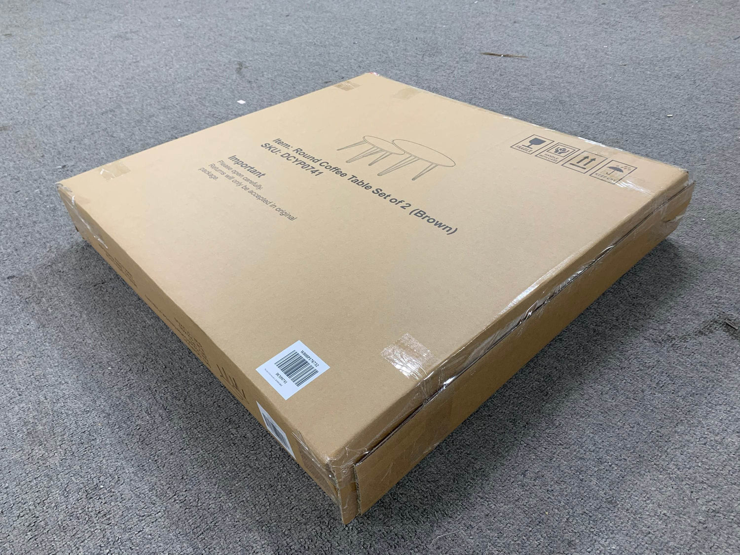 Set of 2 Rustic Brown Round Nesting Coffee Tables is backordered and will ship as soon as it is back in stock.