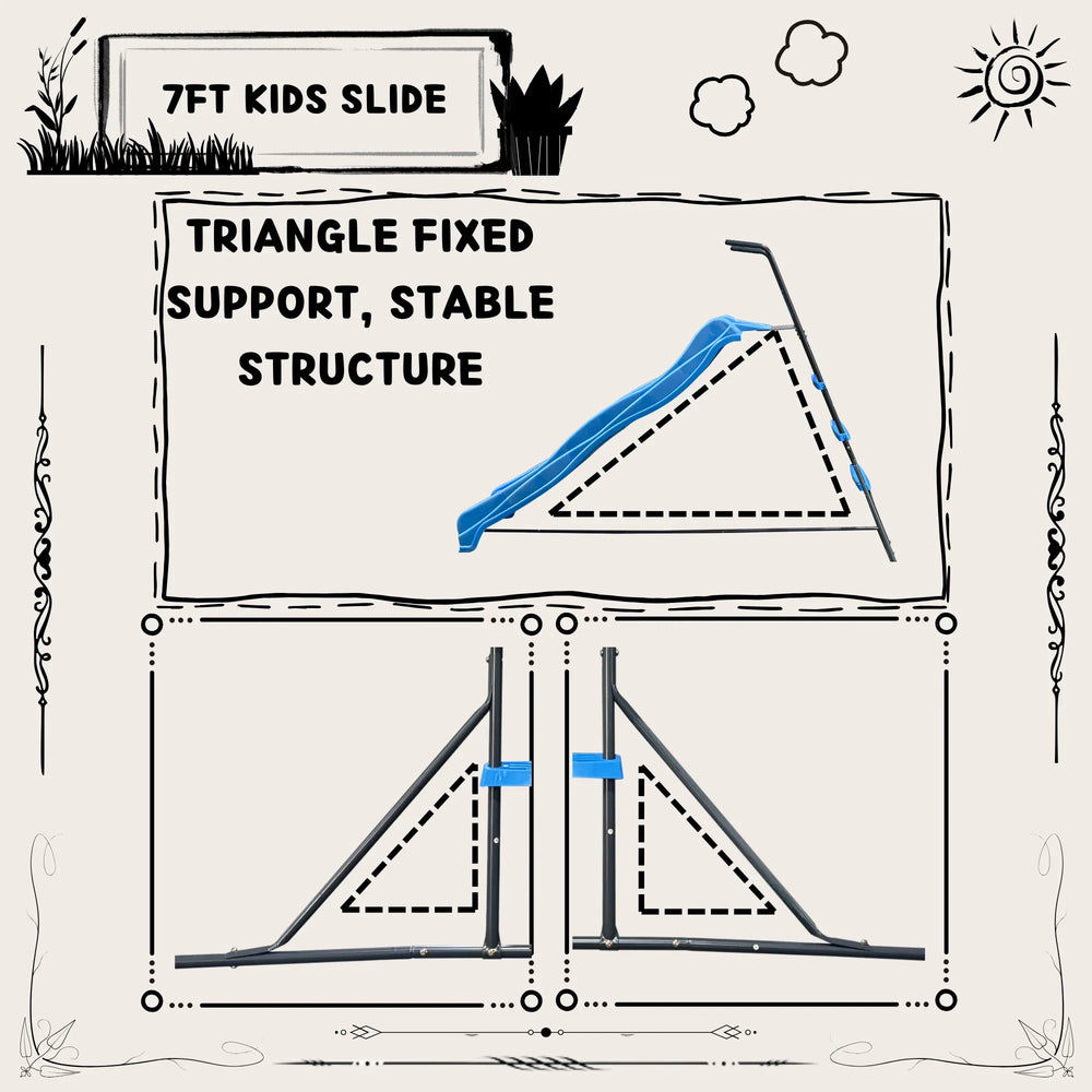 7-Foot Kids Freestanding Blue Plastic Slide Playground