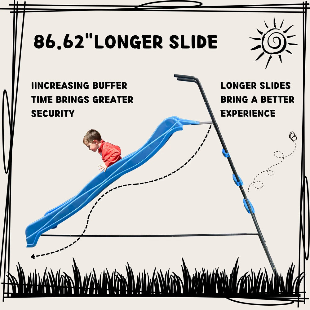 Designed for active children, this vibrant blue freestanding slide offers a thrilling play experience right inside your home. Made from durable, high-quality plastic, it stands 57 inches (144 cm) tall and stretches nearly 94 inches (238 cm) long, providing a safe and exciting slide for kids to enjoy. Its bright color and sturdy construction stimulate outdoor play advantages indoors, encouraging physical activity and imaginative fun. Easy to assemble with clear instructions, this slide fits comfortably in playrooms, classrooms, or indoor playgrounds, making it an ideal companion for daily playtime. The stable base ensures safety and security during use, giving parents peace of mind. Create joyful memories and promote healthy play habits with this engaging children’s slide. Elevate your child’s indoor adventure today!