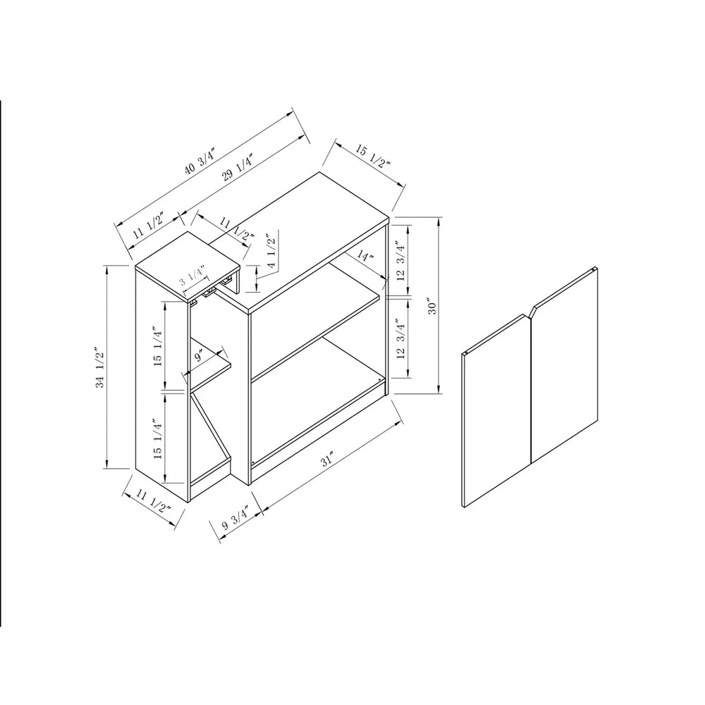 Enhance your home bar or kitchen space with this stylish white oak bar cabinet, thoughtfully designed to store and showcase your favorite wines and glassware. Featuring a removable wine rack that holds up to four bottles, this cabinet provides flexible storage to suit your collection. Behind its two doors lies spacious shelving, perfect for organizing additional bottles, bar accessories, or decorative items. The integrated wine glass rack holds up to four glasses securely, making it easy to entertain guests. Cutout handles offer effortless access while adding a modern touch. Crafted from durable particle board, this compact cabinet measures 40.75 inches long, 15.5 inches wide, and 34.5 inches high, making it an ideal space-saving solution that combines functionality and contemporary design. Elevate your entertaining area today with this elegant and practical wine storage display.
