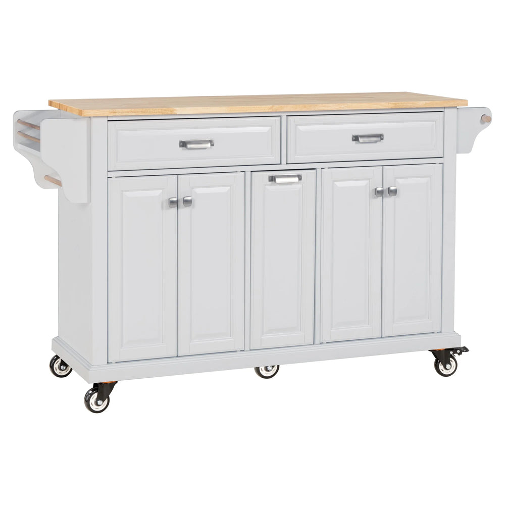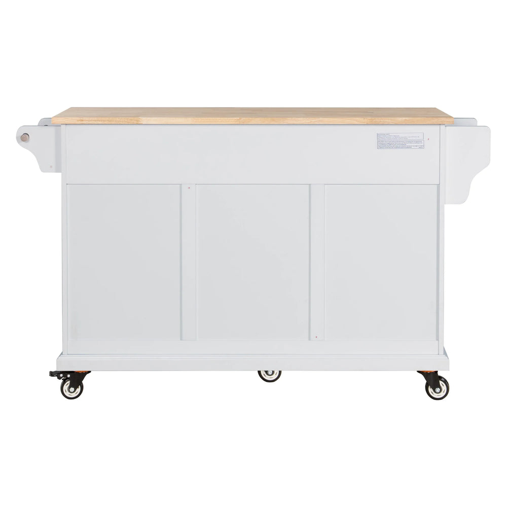Upgrade your dining room with this versatile kitchen island cart featuring a durable rubberwood countertop and robust solid wood plus MDF construction. Designed for chefs and home cooks alike, it provides ample workspace and smart storage solutions to keep your kitchen essentials organized and within reach. The large rectangular island measures 60.5 inches long by 18.13 inches wide and stands 36.75 inches tall, offering plenty of prep area and easy mobility on its five sturdy wheels. Equipped with two spacious top drawers, a center double-layered storage drawer, adjustable shelves, and built-in towel and spice racks, this cart enhances both functionality and style. Whether prepping meals or serving guests, it streamlines your kitchen workflow. Elevate your cooking space today with this practical, elegant kitchen cart.