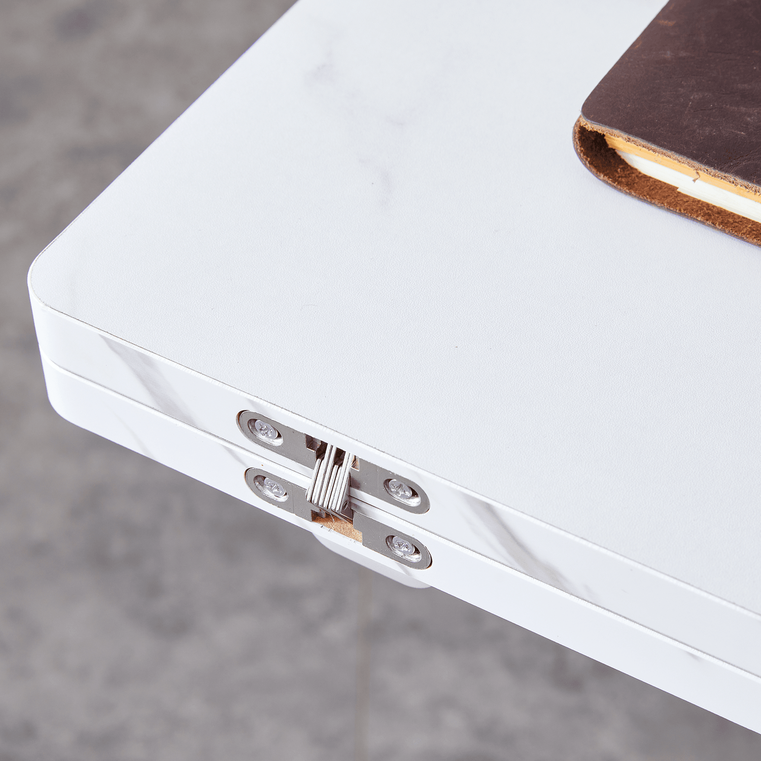 This sleek multifunctional lift table offers exceptional adaptability for your living or work space. Featuring a durable 0.8 inch (2 cm) thick MDF textured white desktop paired with elegant golden metal legs, it blends modern design with practical functionality. Easily switch between a dressing table, coffee table, dining surface, or office desk to suit your needs. The adjustable legs allow height customization from 18.3 inches to 29 inches, ensuring ergonomic comfort whether seated or standing. When not in use, the table folds compactly to save space, making it ideal for small apartments or versatile rooms. Rounded corners enhance safety while the sturdy construction supports daily use. Upgrade your home with this stylish and practical lift table—elevate your space and productivity today.