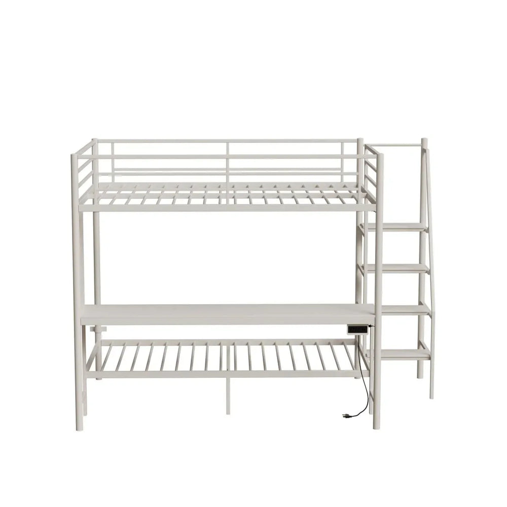 Maximize Space and Function with Our White Full-Size Bunk Bed Featuring LED Lighting and Charging Station