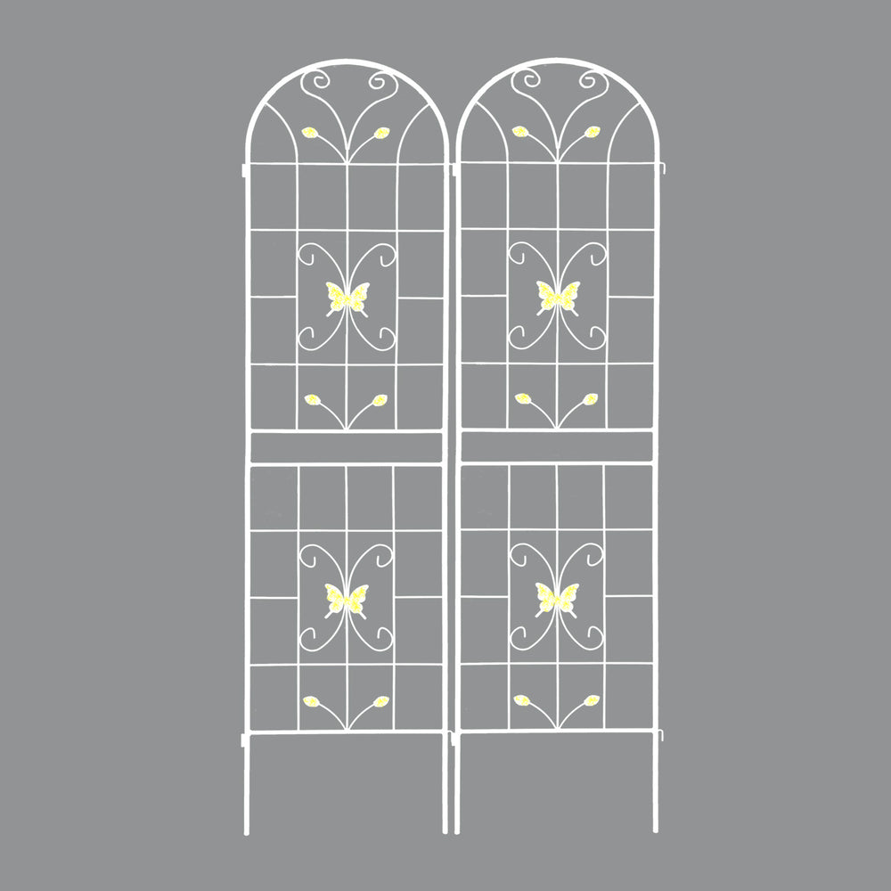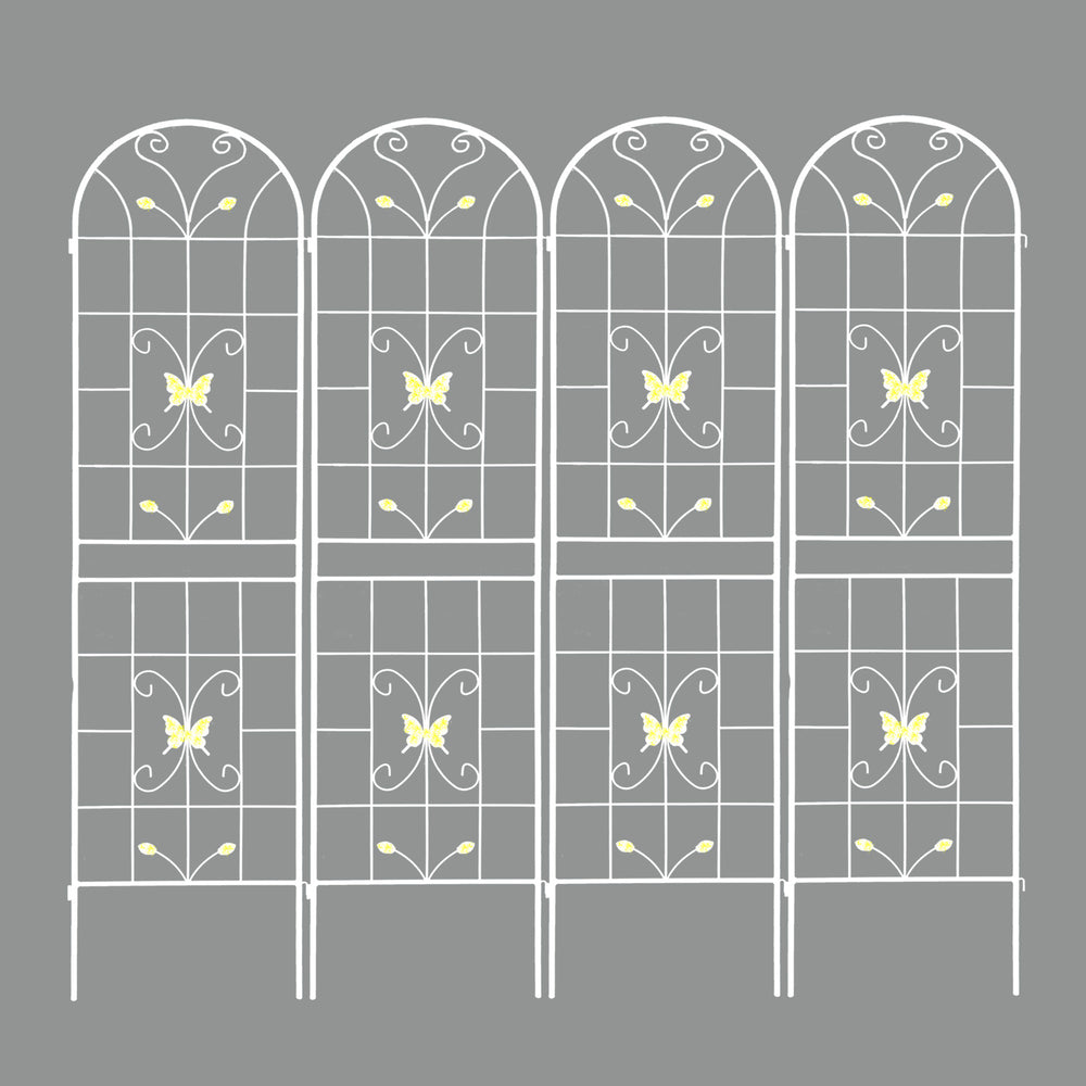 Support your climbing plants and vines effortlessly with this 4-pack metal garden trellis set. Each trellis stands an impressive 86.7 inches (220 cm) tall and extends up to 80 inches (203 cm) in length, providing ample space for your plants to grow vertically and flourish. Crafted from sturdy iron with a cream white powder-coated finish, these trellises resist rust and weather damage, ensuring lasting outdoor use. Whether used individually or combined to create screens or corners, they add both height and style to your garden. Perfect for peas, beans, flowers, and other climbers, these trellises help improve air circulation, maximize garden space, and showcase your plants beautifully. Elevate your outdoor gardening experience today.