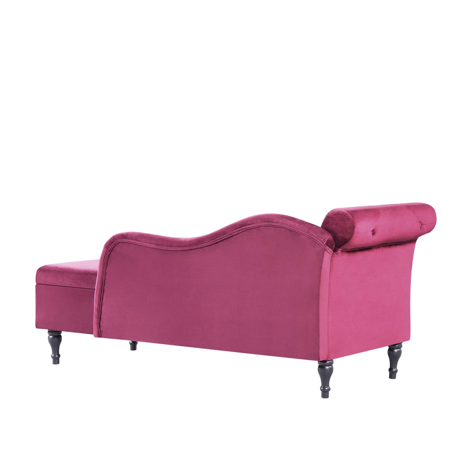 Elevate your bedroom or living space with this stylish 2-in-1 velvet chaise lounge that combines elegant seating with practical storage. Upholstered in soft, skin-friendly burgundy velvet and padded with high-density fiber foam and polyester, it offers medium-firm plushness for comfortable lounging or sitting. Its timeless American design, highlighted by button tufting and silver nailhead trims, lends a sophisticated touch to any room. The solid wood frame and unique gourd-shaped legs deliver sturdy support with up to 300 pounds capacity. Thoughtfully designed for versatility, it functions as an indoor chaise lounge, bed bench, or entryway window bench — all while providing spacious hidden storage to neatly keep blankets, pillows, toys, or books organized. Easy to assemble with included tools and instructions, this armless, backless seating solution enhances both comfort and organization. Elevate your relaxation and maximize your space today.