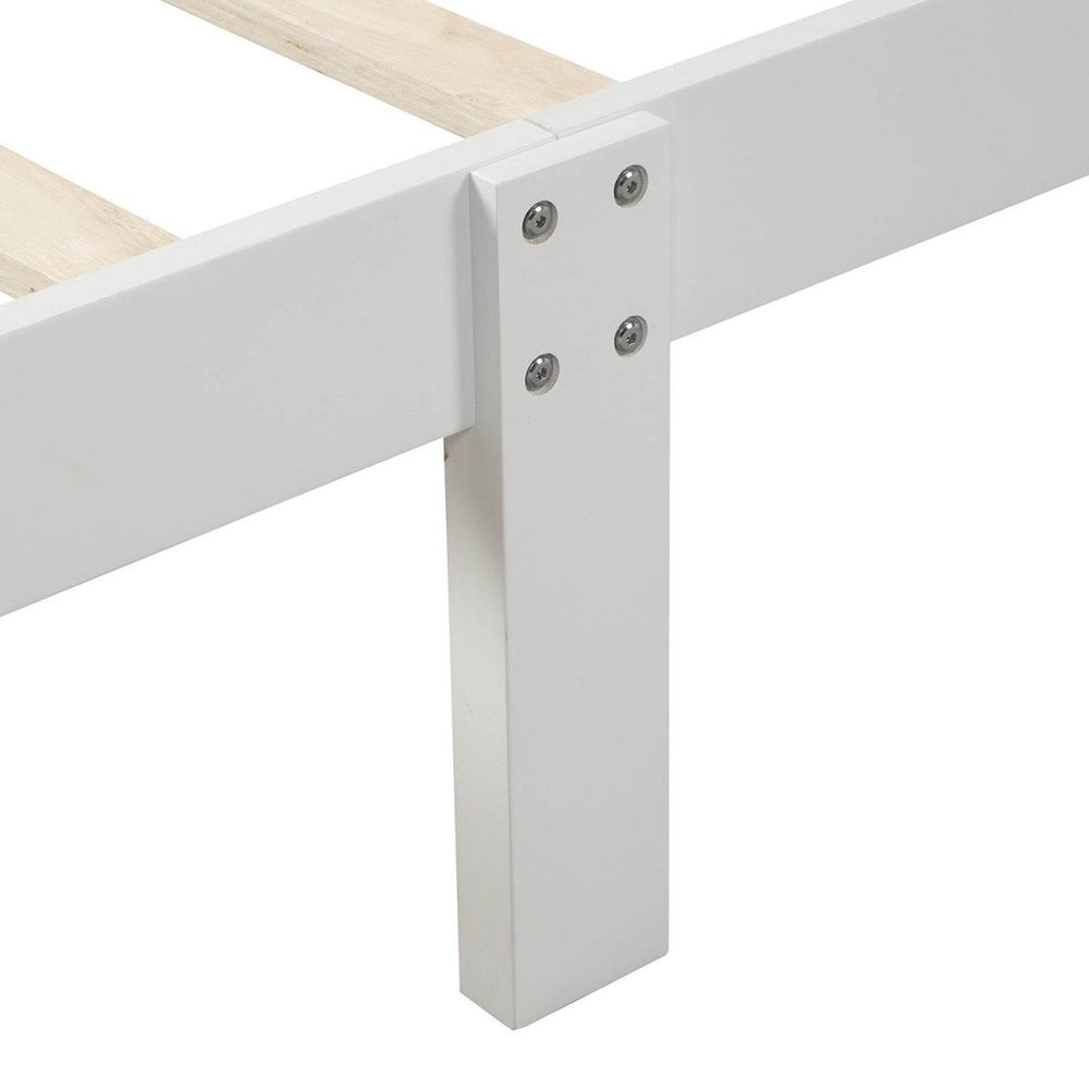 Elevate your bedroom with this minimalist wood platform bed frame, crafted from durable solid wood for long-lasting stability and style. Featuring an integrated sleigh-style headboard and footboard with hollow designs, it creates an open, airy feel that enhances any decor. Designed to fit most Twin-size mattresses without the need for a box spring, this bed frame offers practical comfort and ease. Its low-profile platform surface sits 10.4 inches off the ground, providing ample under-bed clearance. Easy to assemble with included hardware and instructions, this bed is an excellent choice for guest rooms, kids’ bedrooms, or small spaces. Choose from classic White, rich Espresso, or warm Oak finishes to match your personal style. Upgrade your sleep space with the perfect blend of simplicity, function, and natural beauty—order yours today!