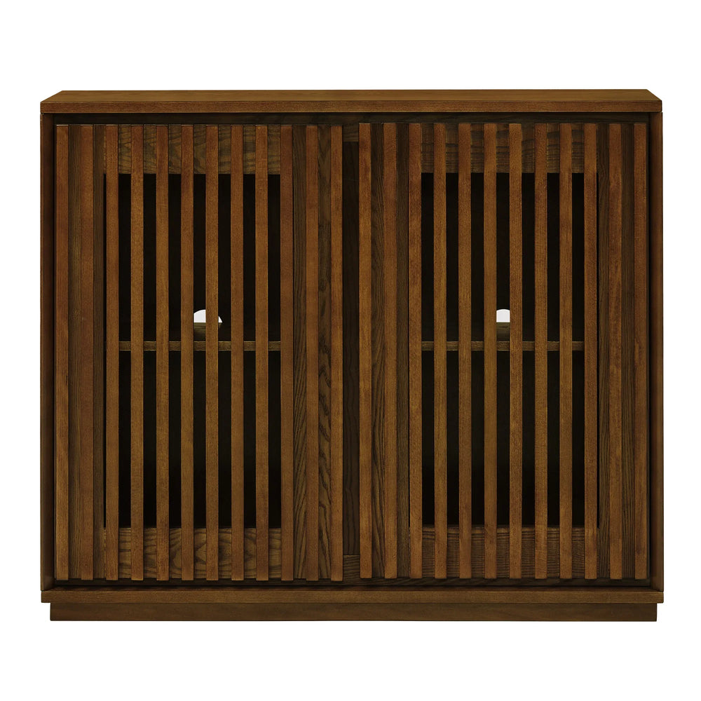Bring timeless style and practical storage to your living space with this Mid Century Modern Fluted Sideboard Cabinet. Crafted from solid wood and MDF in a rich walnut brown finish, its vintage fluted design showcases elegant wood grain and hollowed-out strips, adding both charm and dimension. Measuring 39 inches long, 9.25 inches wide, and 32.5 inches high, this compact cabinet fits beautifully in entryways, hallways, dining rooms, or kitchens. Thoughtfully designed with two outlet holes at the back, it allows convenient charging of appliances without blocking wall sockets—ideal for coffee makers, juicers, or electronics. The spacious interior provides flexible storage for fine china, glassware, bar accessories, or everyday essentials. Easy to assemble and clean, this multifunctional buffet cabinet combines style and utility to keep your home organized and inviting. Elevate your storage solutions today.