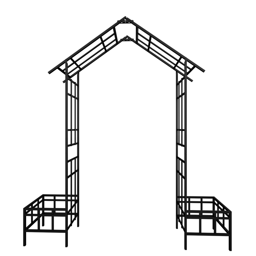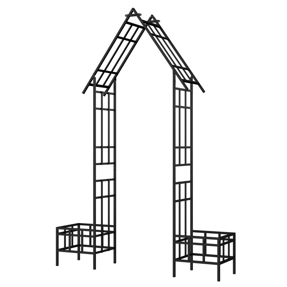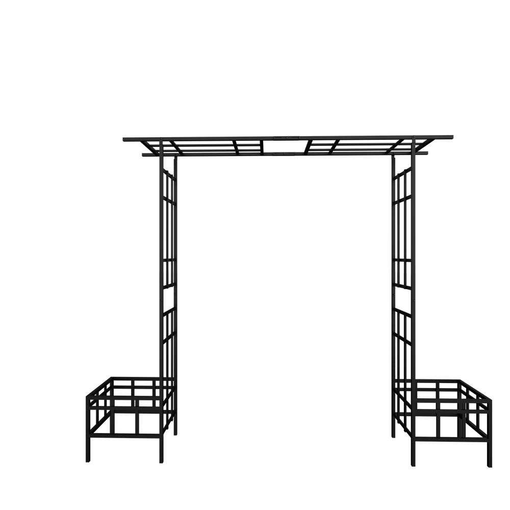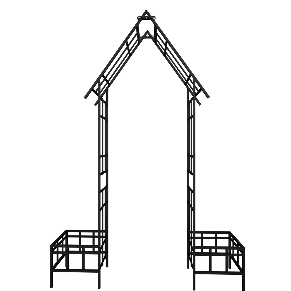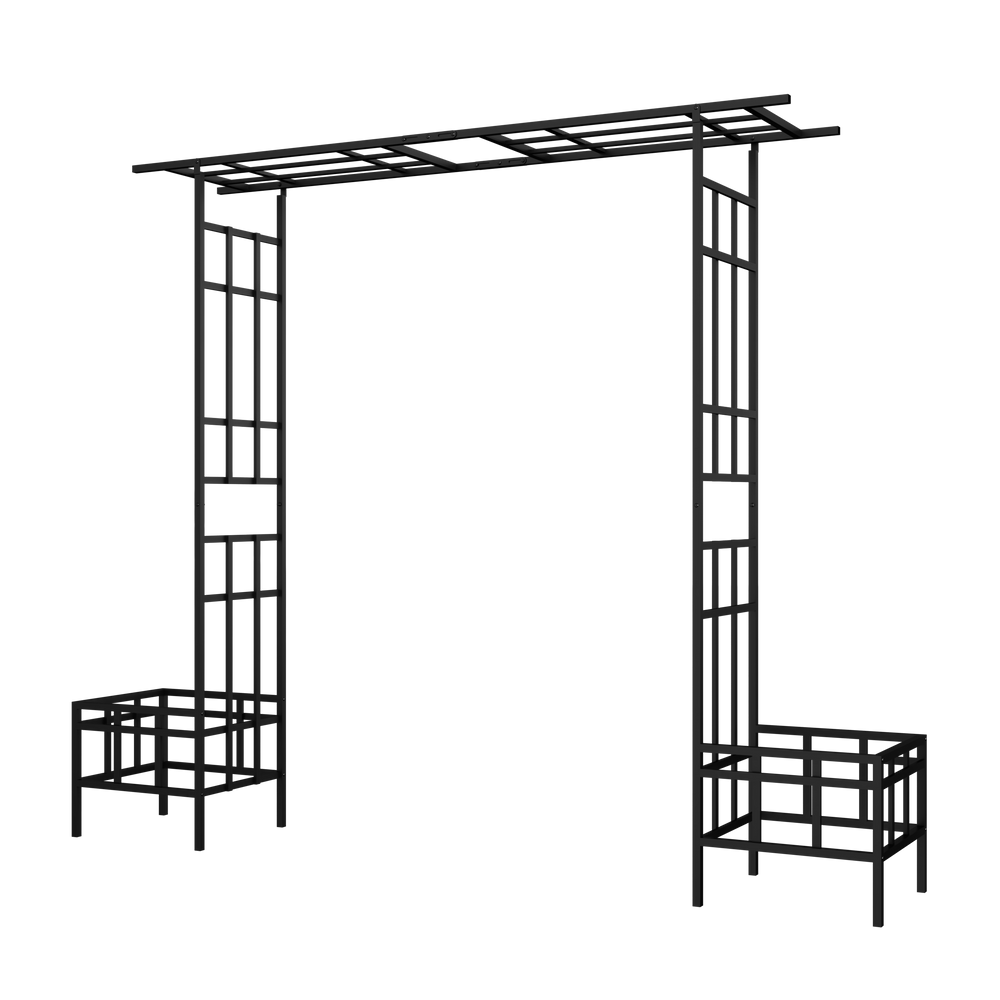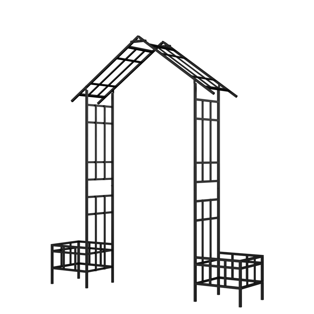 Create a stunning focal point in your outdoor space with this versatile metal garden arch. Designed with an adjustable width from 68.11 inches to 94.29 inches, it easily fits your unique garden layout. Crafted from durable iron with a galvanized tube and powder-coated finish, this black arch offers exceptional rust resistance and stability to withstand the elements year-round. Its flat design provides a beautiful backdrop for climbing plants such as roses, ivy, clematis, and morning glories, enhancing your garden’s natural beauty while adding privacy. Lightweight at just under 26 pounds, this arch is easy to assemble with pre-cut and pre-drilled parts, making installation quick and stress-free. Elevate your garden’s charm and invite nature to flourish with this elegant and practical climbing plant support.