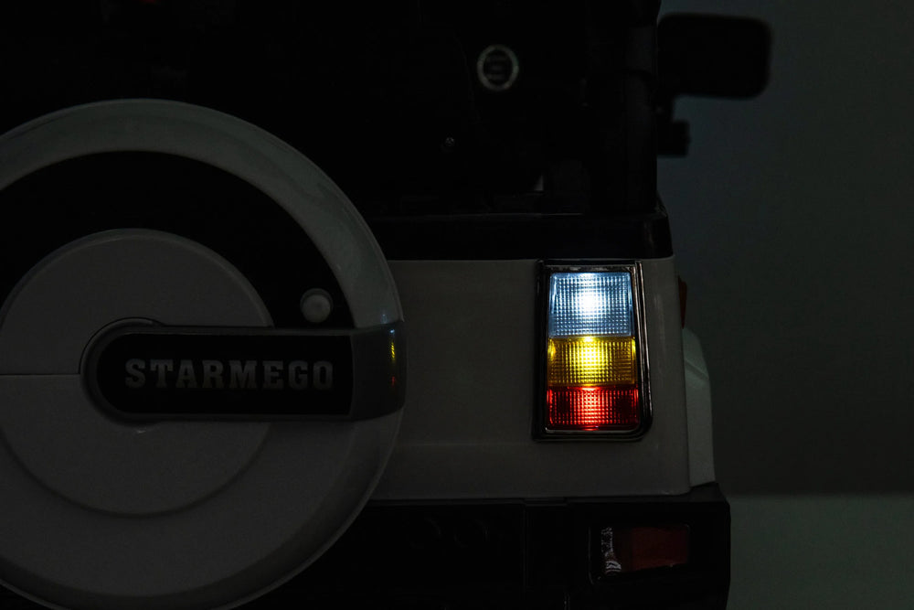 - 4-Wheel Drive with Shock Absorbers: Ensures stability and smooth rides on outdoor surfaces.