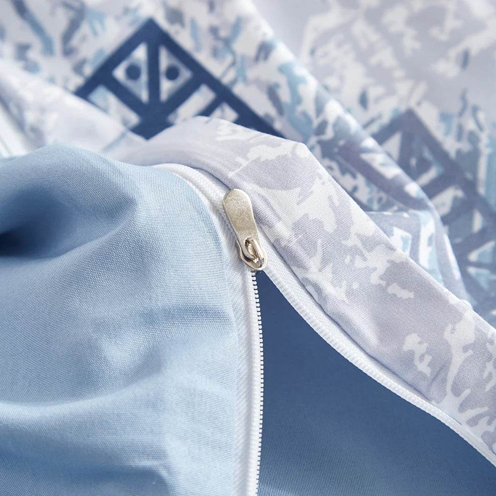Duvet Cover Set, Bohemian Aztec Blue White Cream Bohemian Geometric Duvet Cover Set, Super Soft Lightweight 3 Piece Bedding Set - Blue / 229x229 / set|United States is backordered and will ship as soon as it is back in stock.