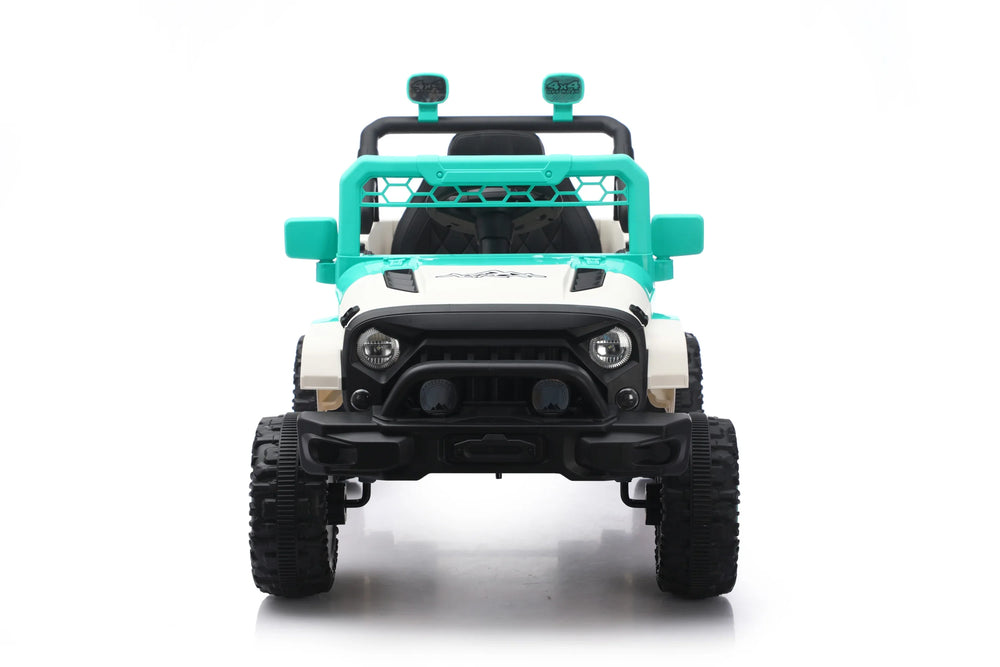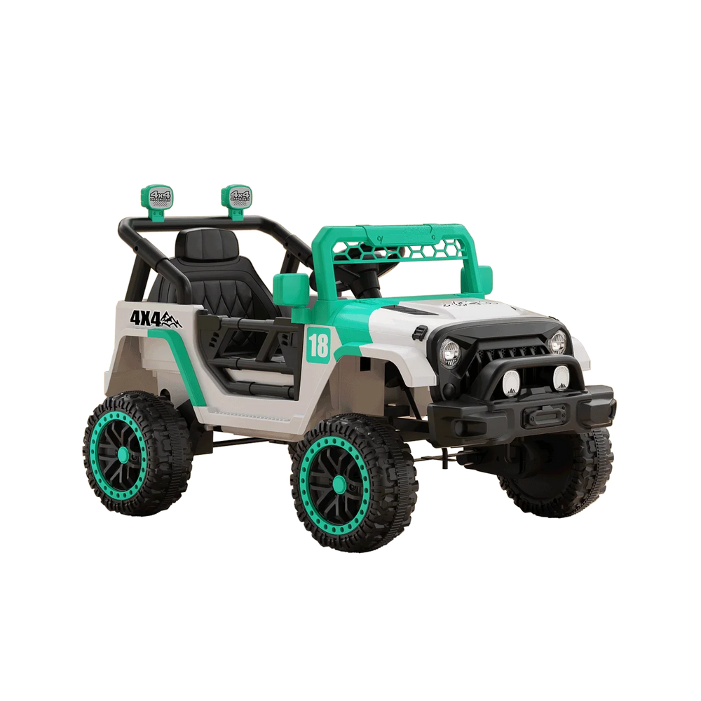 Fuel your child's imagination and outdoor play with this 12V Ride-On Car, designed for kids aged 3 years and up. Featuring a realistic off-road style in vibrant white and green, it offers powerful dual 12V 320W motors and a high-capacity 12V45 battery for extended adventures. The durable plastic body and spring suspension ensure smooth rides across various terrains, while safety is prioritized through an adjustable seatbelt, lockable doors, and a max speed of 2.8 mph. Parents can take control anytime using the included remote with forward and reverse functions, making it perfect for beginners and confident drivers alike. Bright LED headlights and built-in early education music add to the fun without complicated Bluetooth pairing. At just under 40 inches long and weighing only 27.5 pounds, it’s easy to handle and perfect for parks or backyards. Elevate your child’s outdoor playtime today with this safe, engaging electric car.