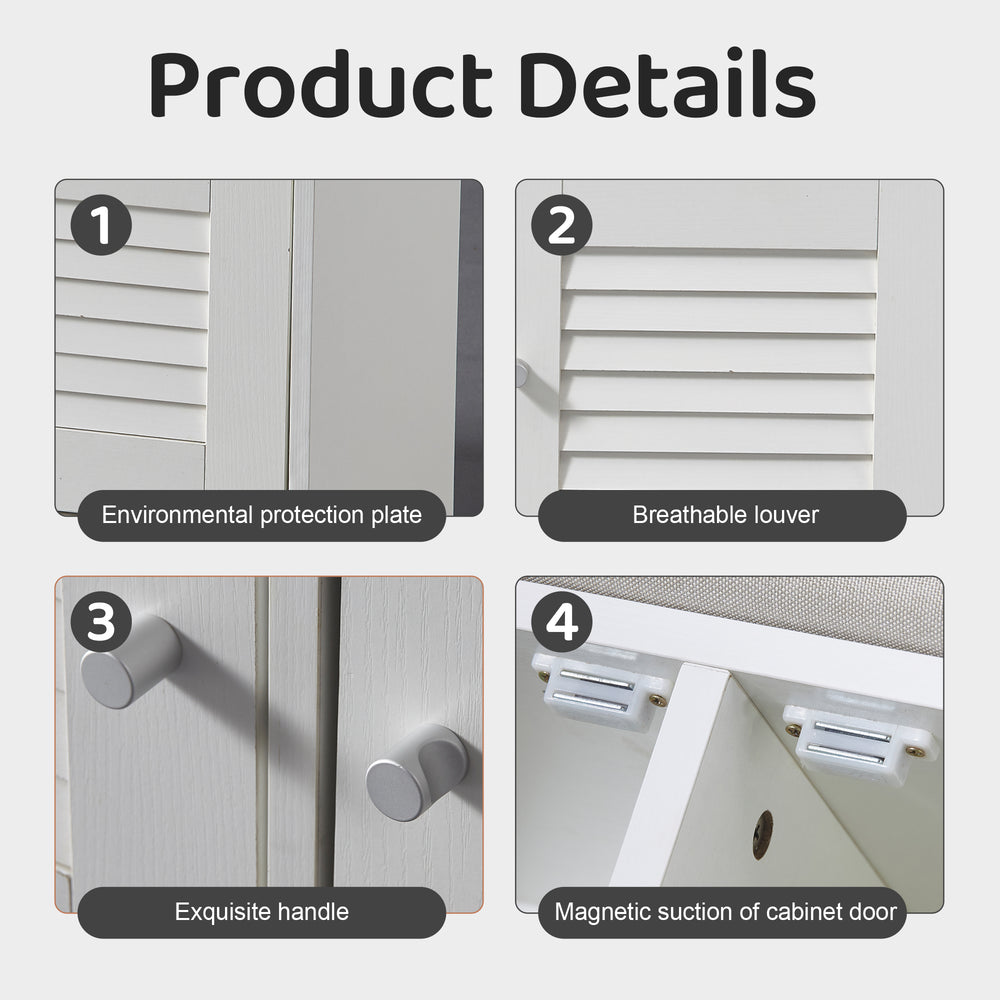 - Louvered door panels enhance ventilation to reduce shoe odors