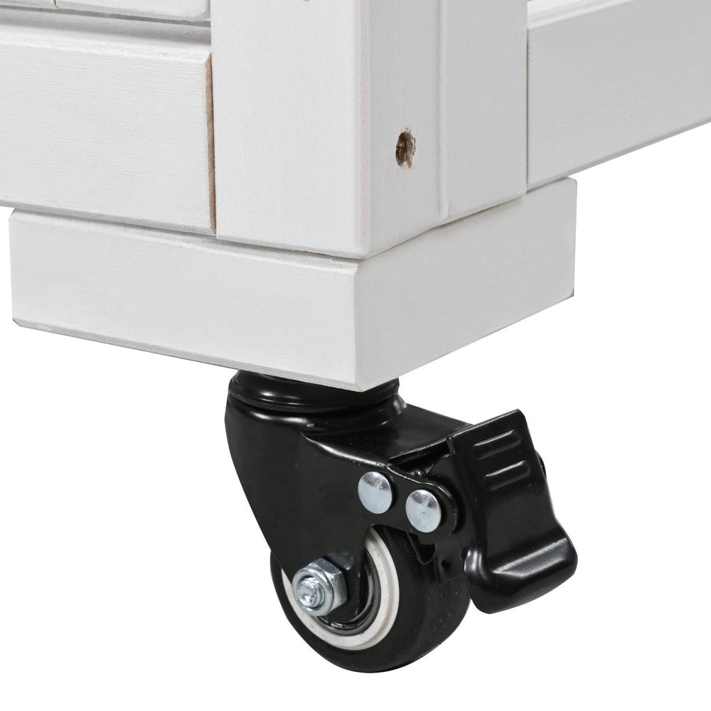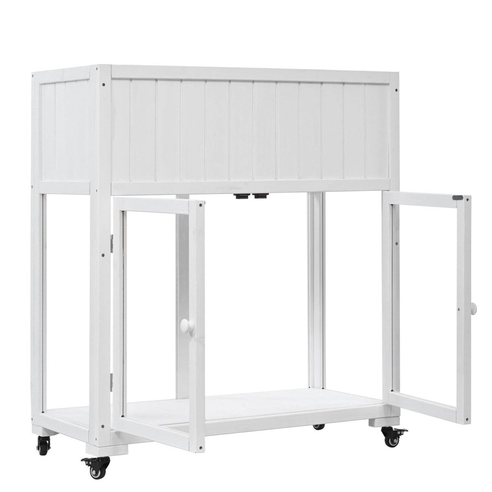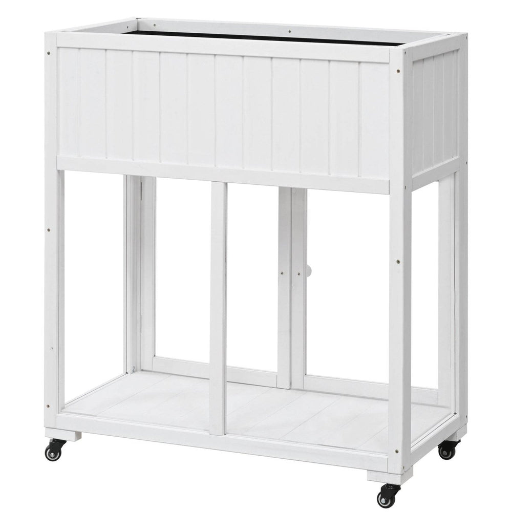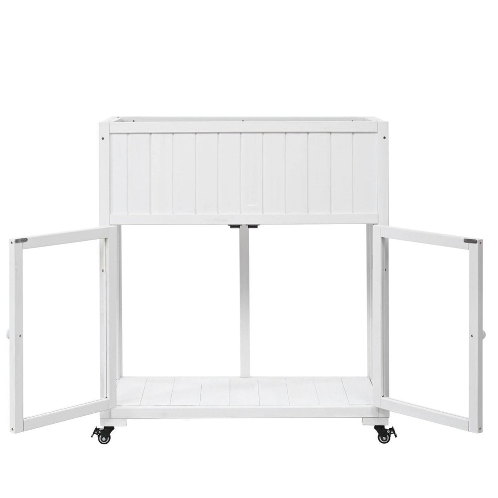 Protect your plants year-round with this compact and durable cold frame, crafted from 100% premium fir wood and equipped with clear polycarbonate doors. Designed to create a greenhouse effect, it traps warmth and sunlight, fostering healthy growth even in cooler weather. The raised bed features a liner and drainage holes to prevent overwatering, ensuring your flowers, vegetables, and seedlings thrive. With removable wheels, this versatile cold frame can be easily moved to capture the best sun or kept stationary for stability. Its casual white finish and anti-tipping devices make it a stylish and safe addition to any balcony, patio, or garden. Embrace effortless gardening and elevate your outdoor space today.
