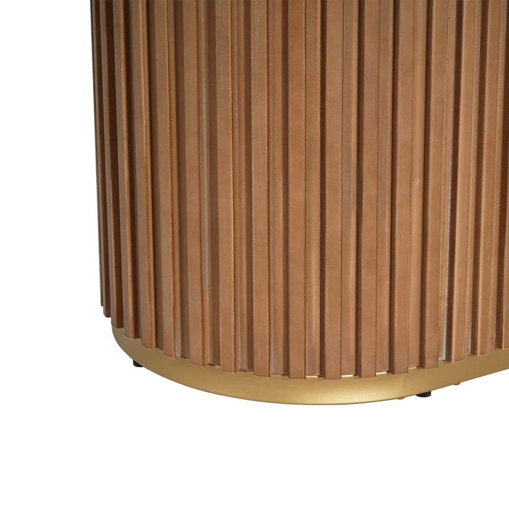- Minimalist Pedestal Base: Offers solid support with stylish tambour panel detailing.
