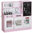 Encourage hours of creative and educational fun with the Qaba Play Kitchen, designed for kids ages 3 to 8. Crafted from durable MDF with a vibrant pink finish, this pretend playset includes interactive features like a chalkboard for menu plans, a toy phone, ice maker, microwave, stove, and a realistic sink with faucet. The functional towel rack and ample storage space keep playtime organized, while the included 5-piece accessory set—featuring stainless steel pots, pans, lids, and utensils—completes the cooking experience. Measuring 33 inches long by 10.6 inches wide and 31.9 inches high, this kid’s kitchen offers a perfect size for little chefs to explore role play, boost fine motor skills, and learn responsibility in a safe environment. Assembly required. Elevate your child’s playtime today with this engaging and interactive kitchen set.