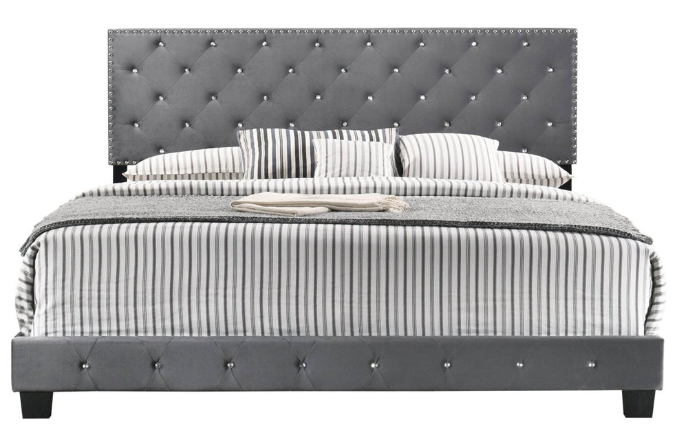 Transitional Gray Velvet King Bed Frame with Foam Upholstery