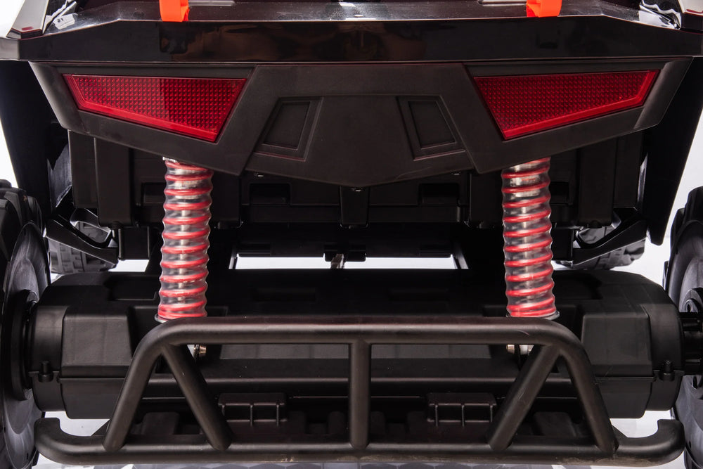 Give your children an exciting ride-on experience with this rugged 4x4 Off-Road UTV toy car designed for two young drivers. Powered by four 200W motors, it delivers impressive off-road performance on various terrains. The sturdy iron and plastic construction ensures durability, while the spacious 47-inch long by 32-inch wide body offers plenty of room for two kids to ride comfortably side-by-side. Equipped with a four-wheel suspension system, it smooths out bumps for a safe and enjoyable ride. Parents can choose between remote control and Bluetooth connection, letting kids drive independently or be guided remotely. With built-in dynamic lights and music playback, every ride becomes a fun adventure day or night. The long-lasting 24V7A battery lets children play longer without constant recharging. Elevate your child’s playtime and create unforgettable moments today.