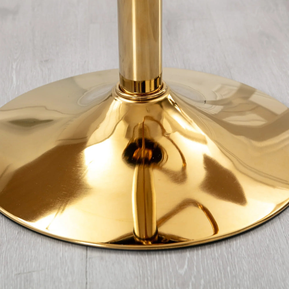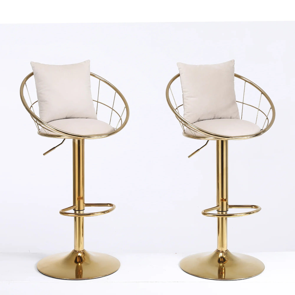 Elevate your dining or bar area with these stylish Off-White Velvet Bar Chairs featuring a pure gold-plated frame for a touch of elegance. Designed for ultimate versatility, each chair offers smooth 360-degree rotation and adjustable height to suit any counter or bar table. The plush velvet upholstery combined with high-quality cotton filling provides exceptional comfort and support, making long conversations and gatherings more enjoyable. The unique woven back design adds a contemporary flair while promoting breathability. Built with a sturdy, rust-resistant metal base and a non-slip rubber ring, these chairs ensure stability and protect your floors. Perfect for kitchens, dining rooms, cafés, or market bars, this set of 2 chairs brings both function and style to your space. Elevate your seating experience today.