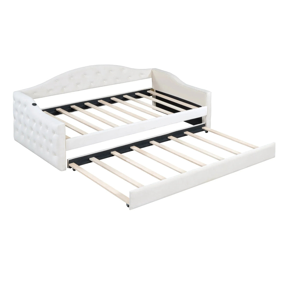 Twin Velvet Tufted Upholstered Daybed With Trundle And USB Charging