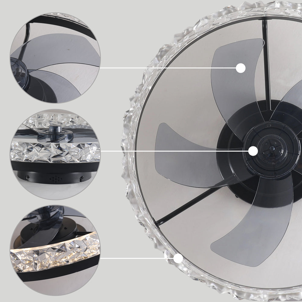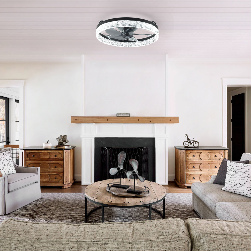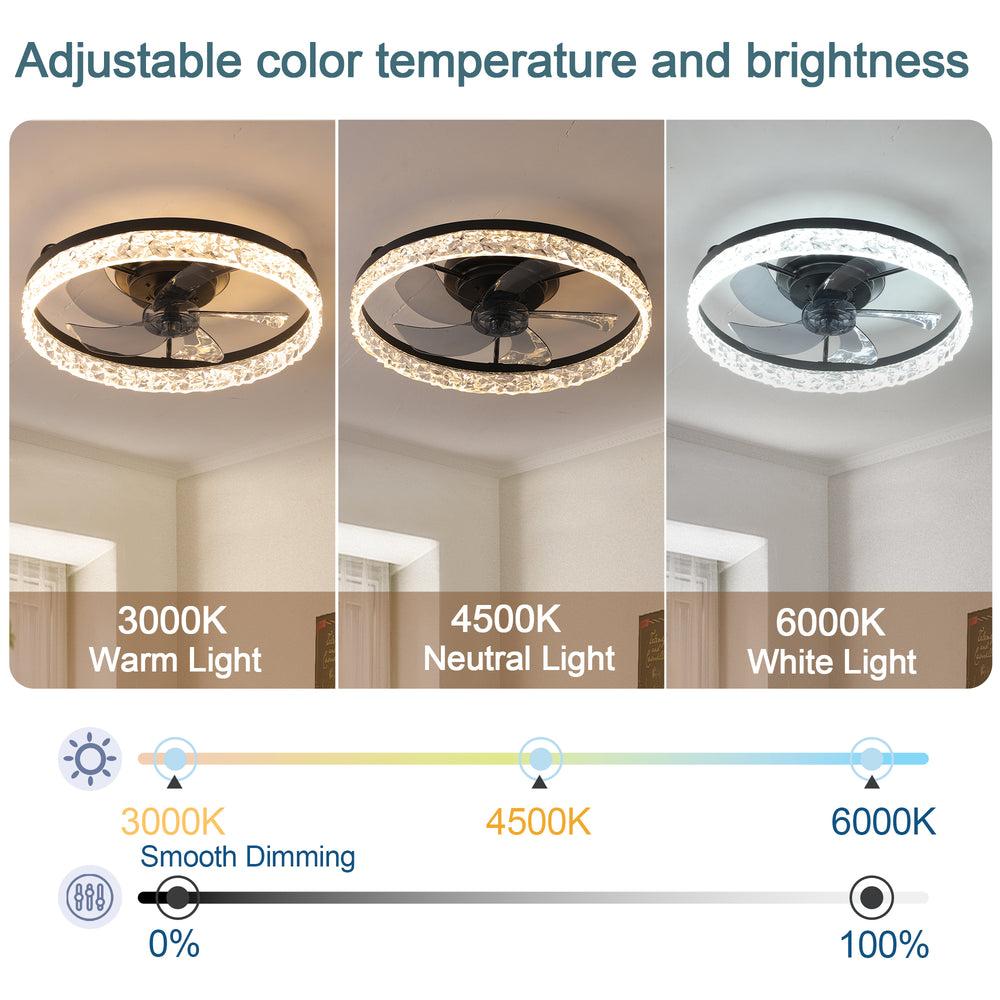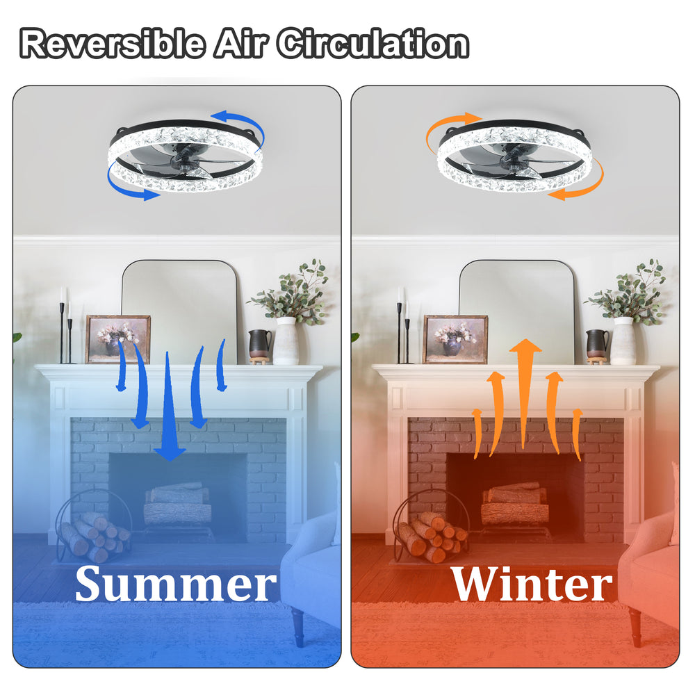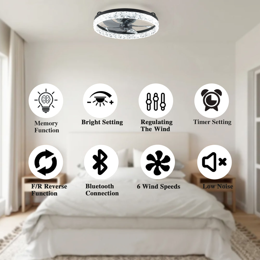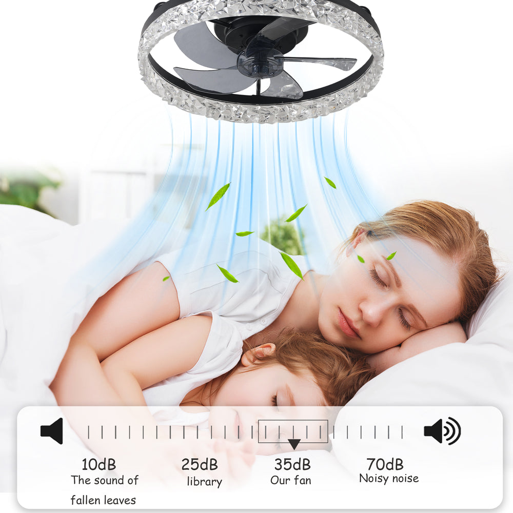 Upgrade your bedroom ambiance and air circulation with this modern 19-inch ceiling fan featuring an elegant black iceberg-style frame. Equipped with seven transparent ABS blades powered by a reversible DC motor, it delivers powerful, energy-efficient airflow ideal for year-round comfort. Control the fan speed and dimmable LED light effortlessly using the included remote or smart app, with seamless integration for voice commands via Alexa. The dual airflow modes provide refreshing cool air downward in the summer and warm air upward in the winter, promoting balanced room temperature and energy savings. Its quiet, six-speed operation ensures a peaceful environment for bedrooms, nurseries, home offices, or kitchens. Easy to install with a user-friendly manual, this fan light blends style and smart functionality to elevate your living space.