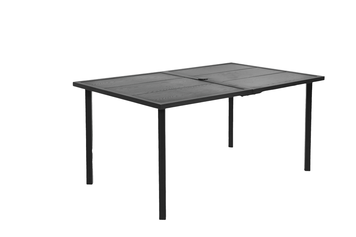• Modern Steel Tabletop: Durable, dirt-resistant surface with umbrella hole for shade options.