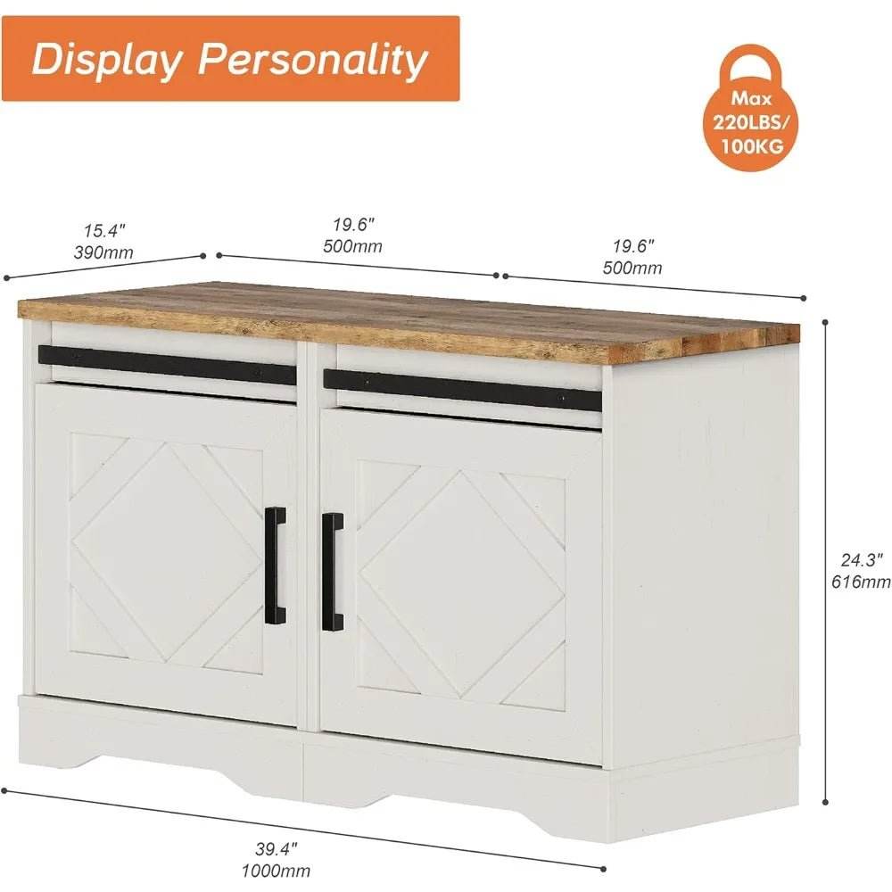 - Farmhouse Style Design: White body, oak tabletop, and black handles for modern rustic appeal.